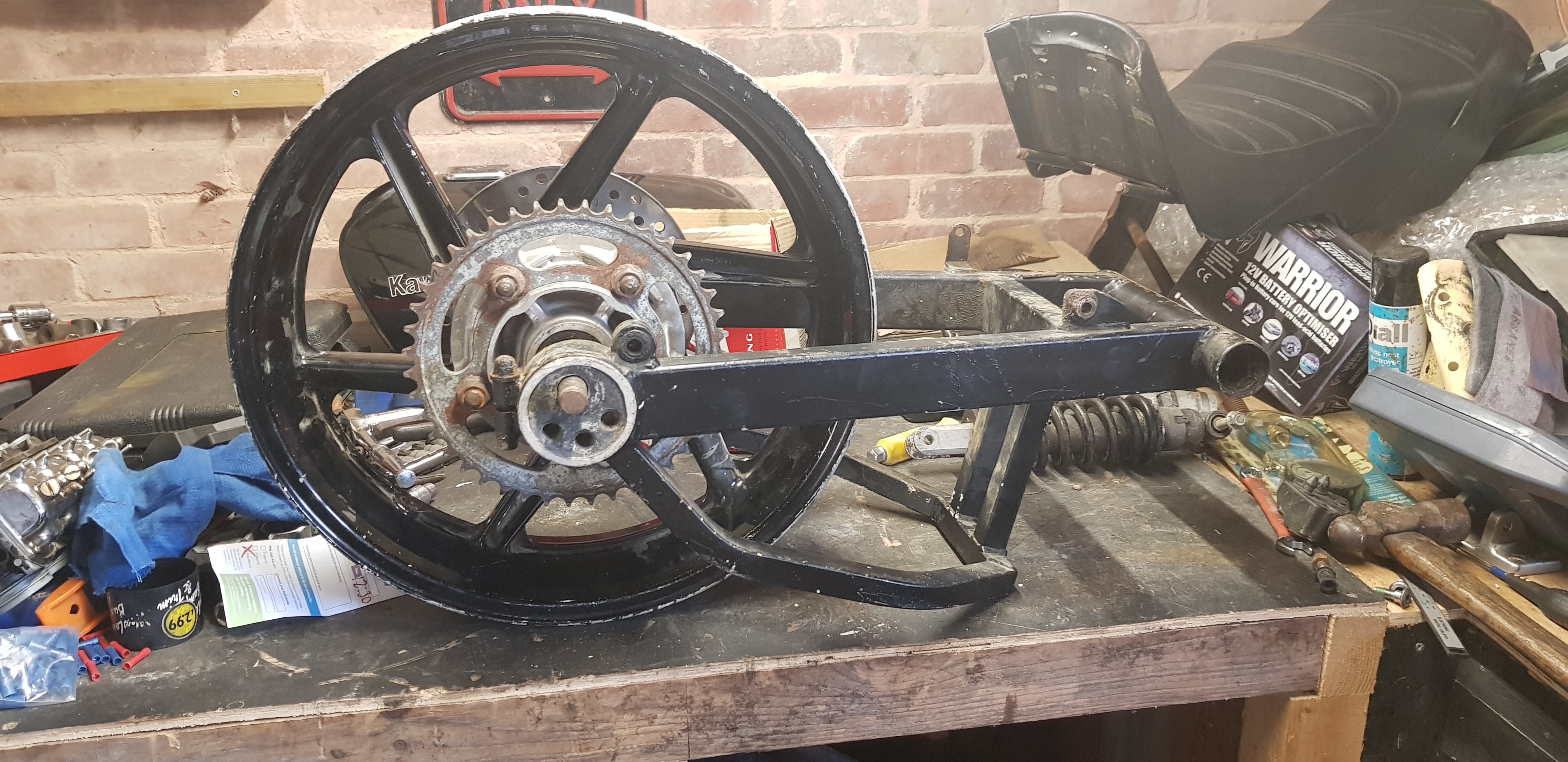 It's only the 4.5" I may source a 5.5" fireblade wheel is the same but I've got this complete so going with this for now, with a 160 tyre, I've also got a offset sprocket from my spare zed engine, somehow I've ended up with 3 engines and one bike :lol: