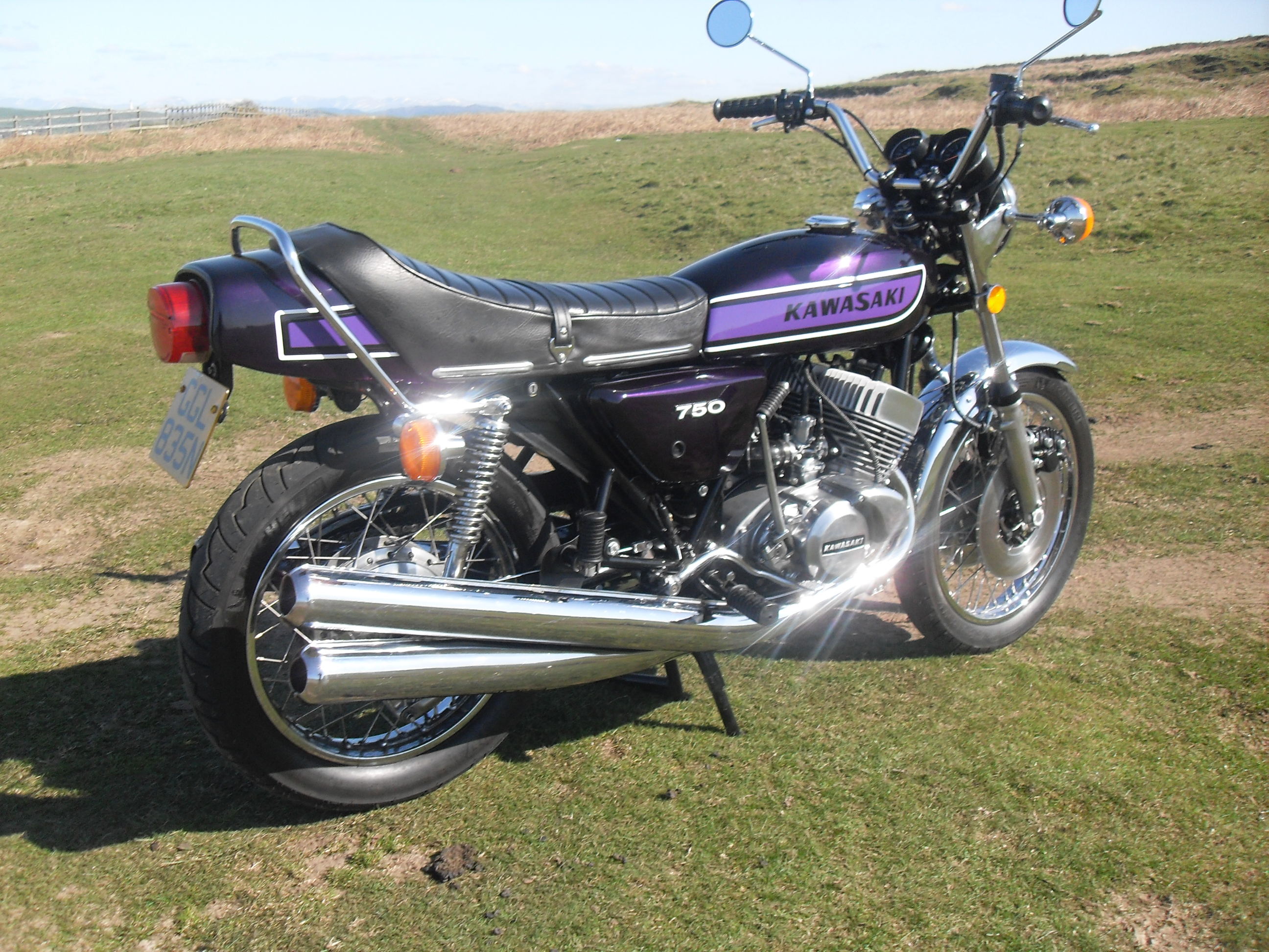 The H2 is a completely unique ride, Torque that would put many a V-twin to shame and a soundtrack that is to die for. Also in Candy purple H2C guise probably the prettiest bike of the 70's.