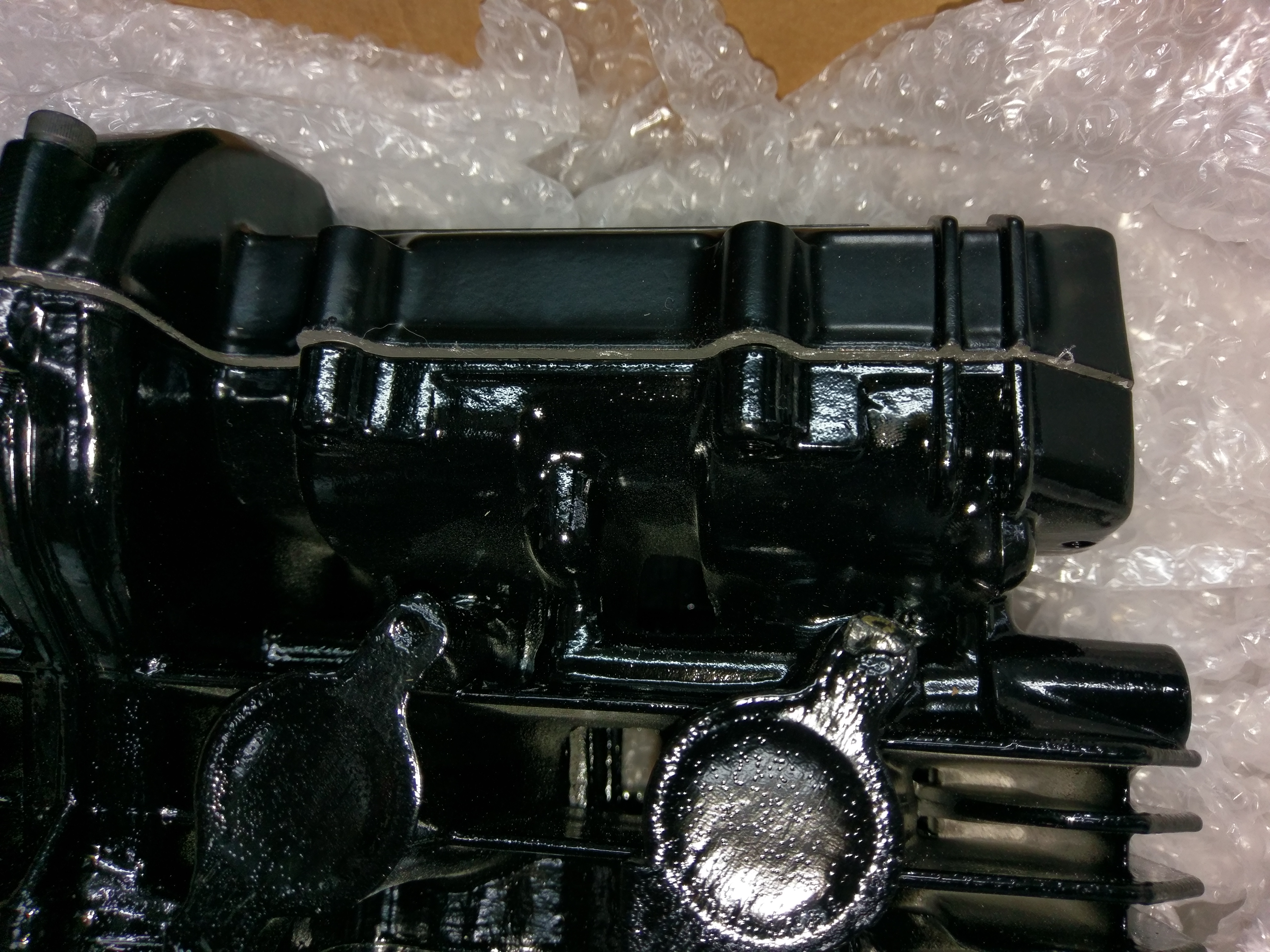 All the engine should be a satin black with gloss outer covers, but the head/ barrels were gloss, the 2 crankcase halves were different shades of satin, there was far too much paint on the rocker cover and missing patches elsewhere - all in all a really bad job. Needless to say, I got my money back, plus the cases being cleaned back to metal again for free. I'm getting tired of this now - companies taking months to do stuff and then it comes back not as it should :(