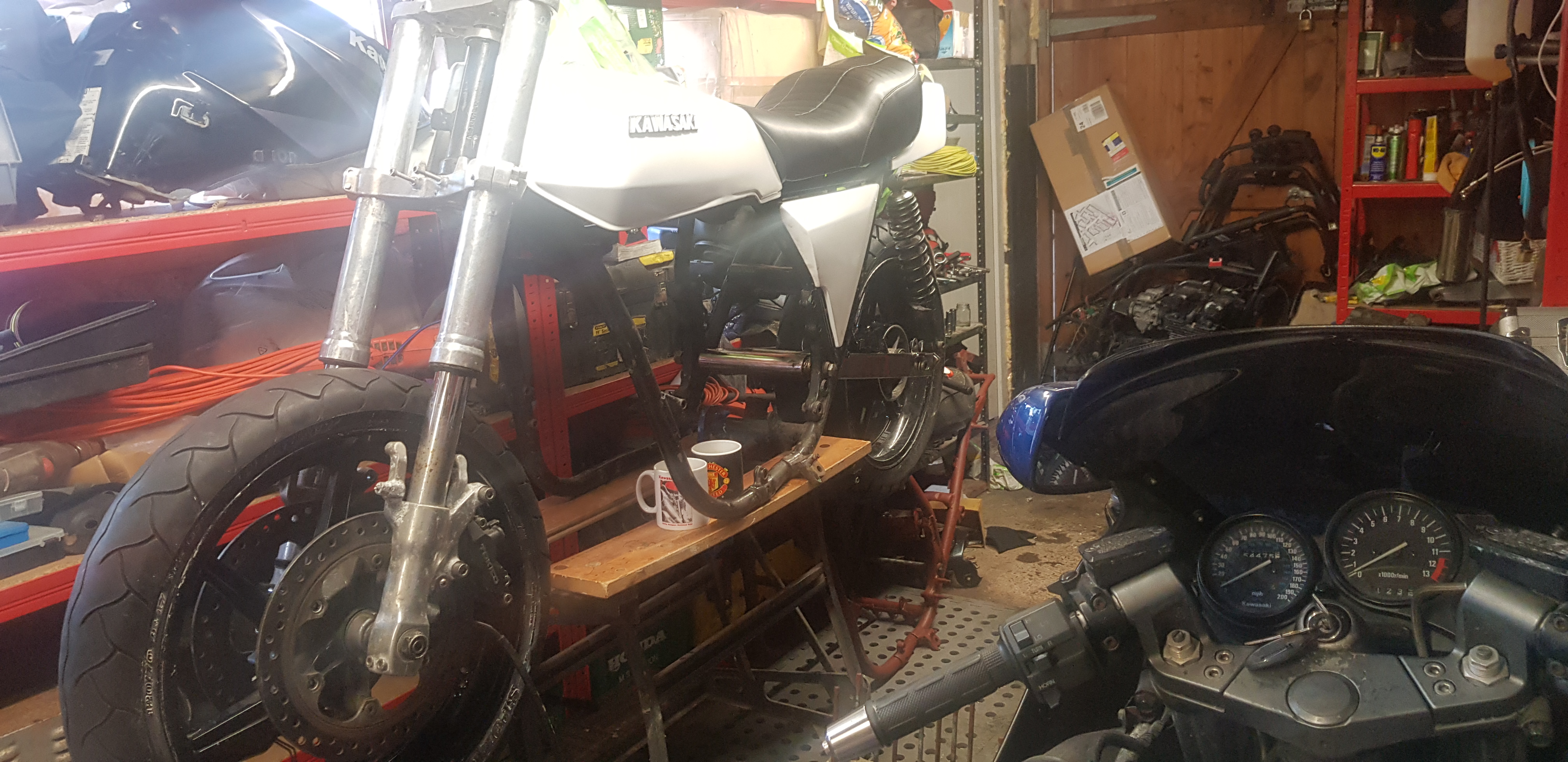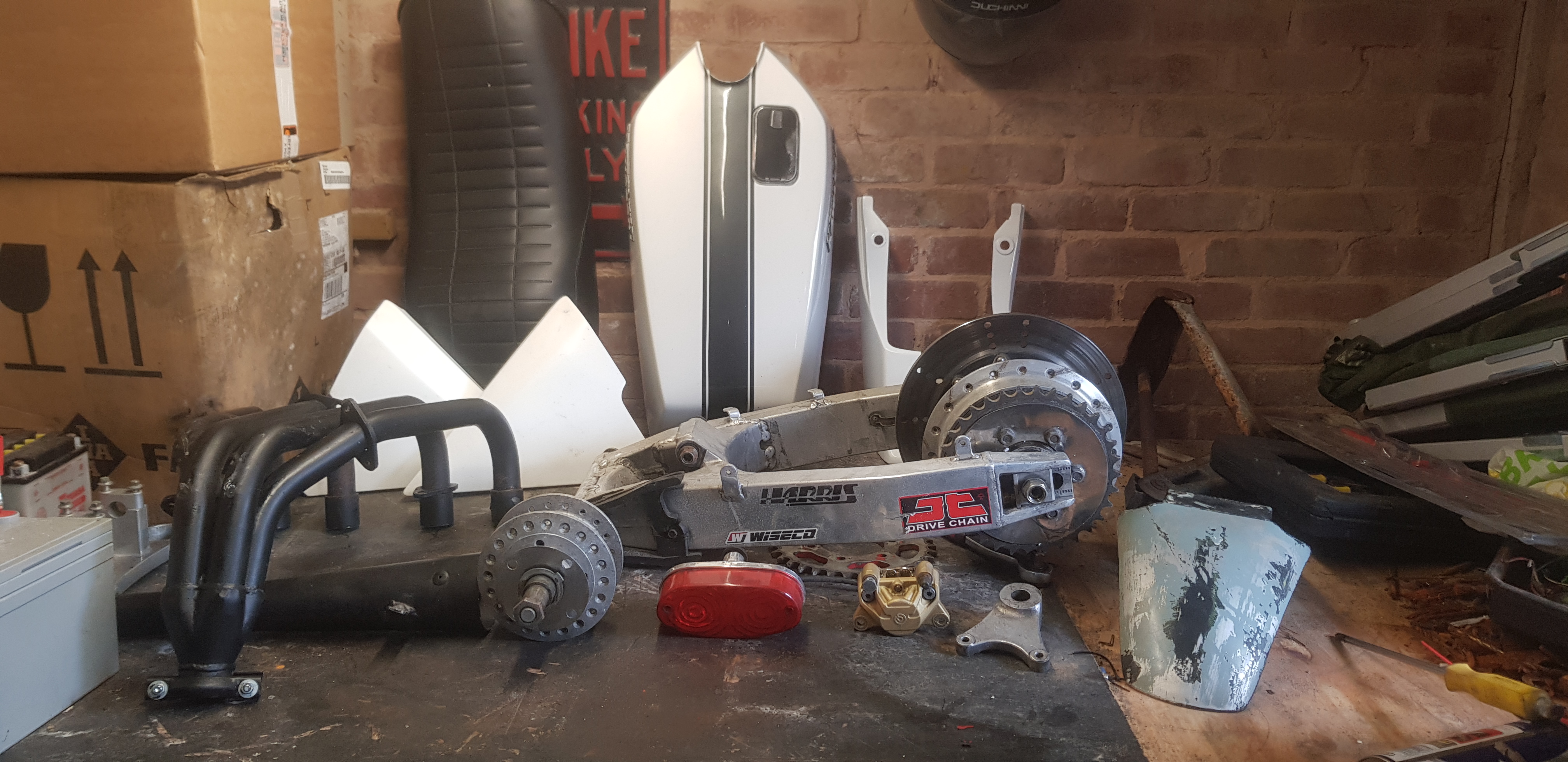 The parts are mounting, a few more out of shot, the raced and braced Z1-R frame is away having some fab work done, 1045 Z1-R motor is built happy days, may get this built sometime soon.