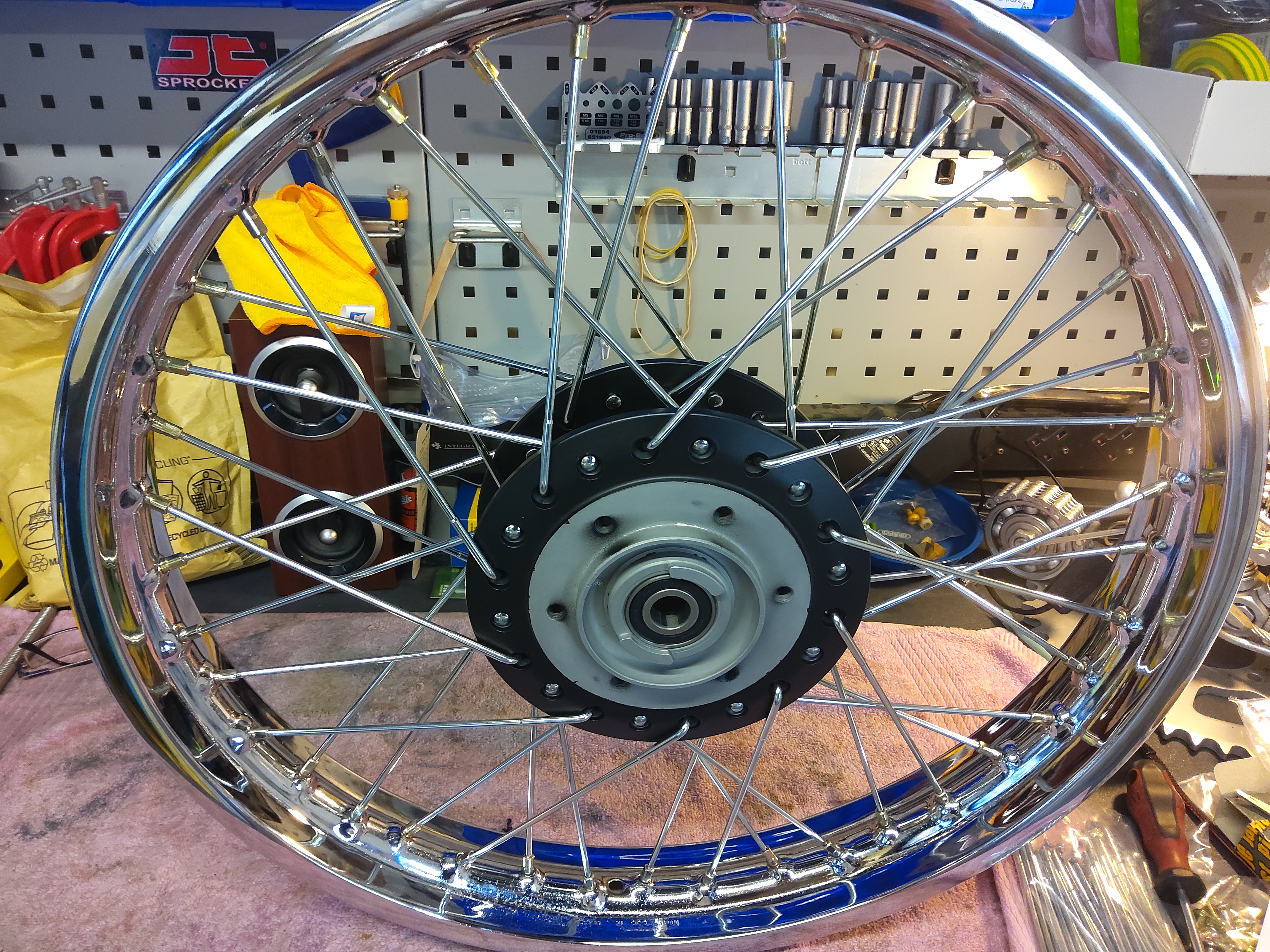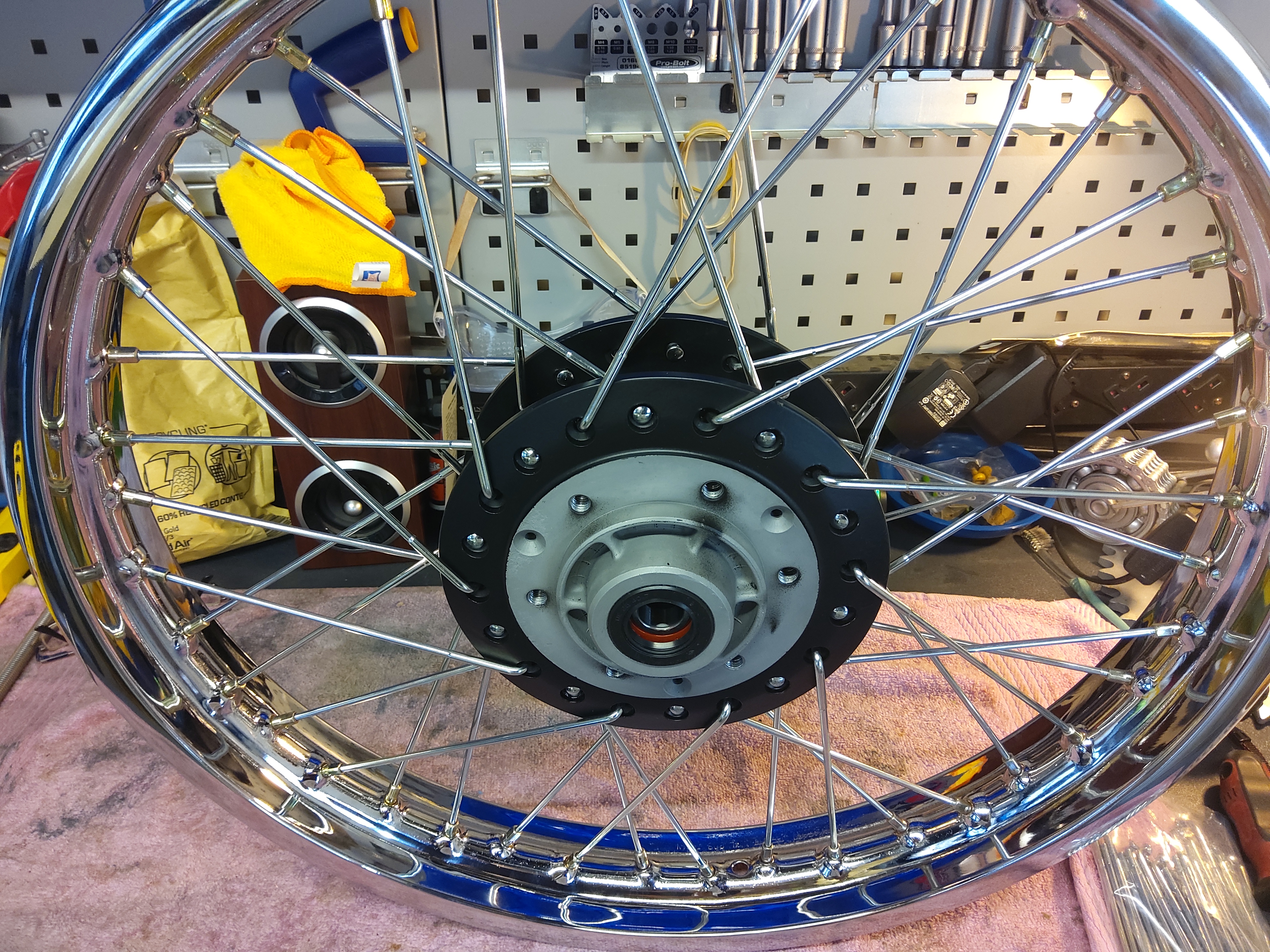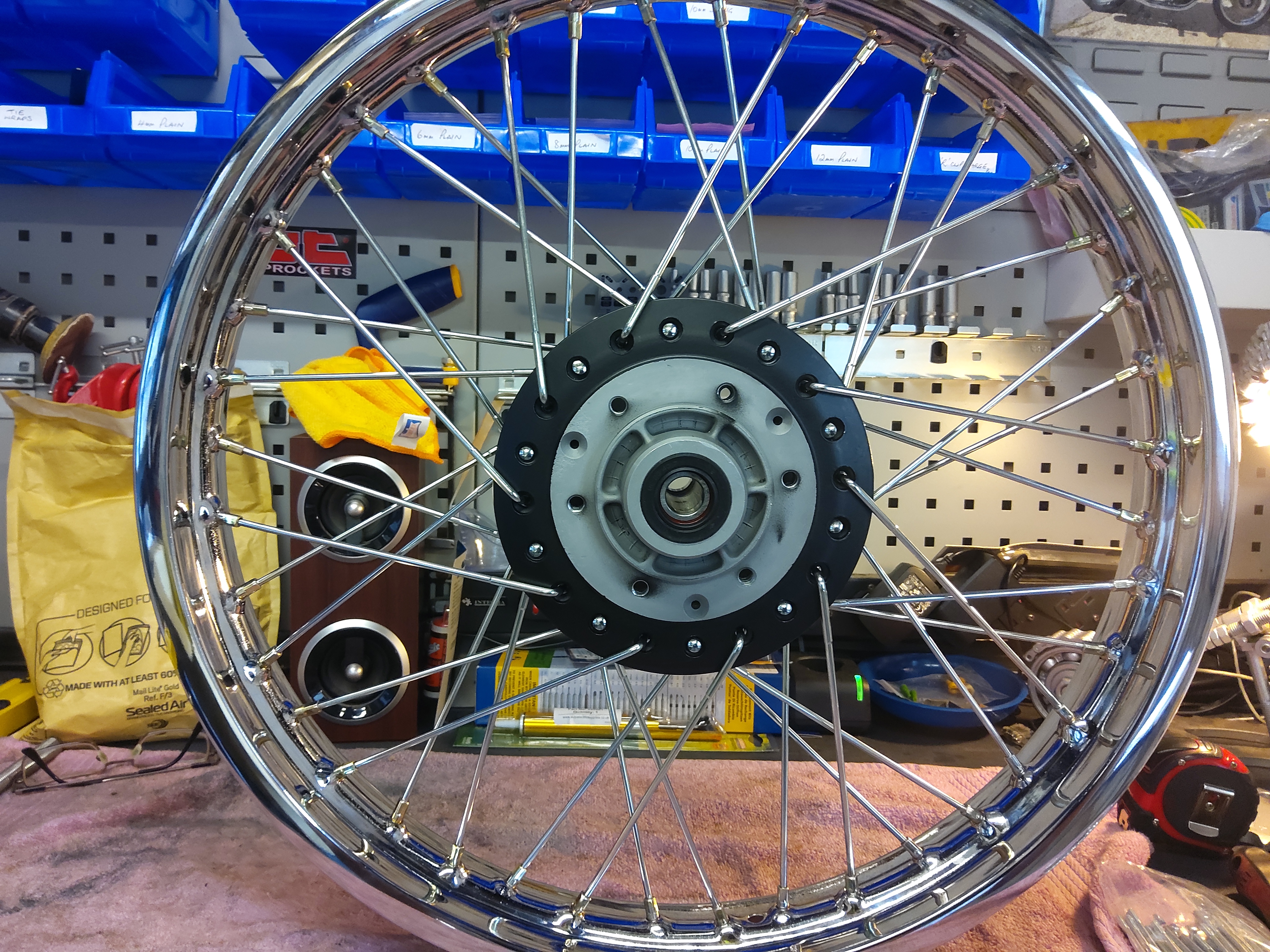 Got the spokes from Z-Power. Central Wheels in Birmingham tensioned and trued them, and I balanced them myself with a kit from Bikers Toolbox. Now installed as per pics attached.