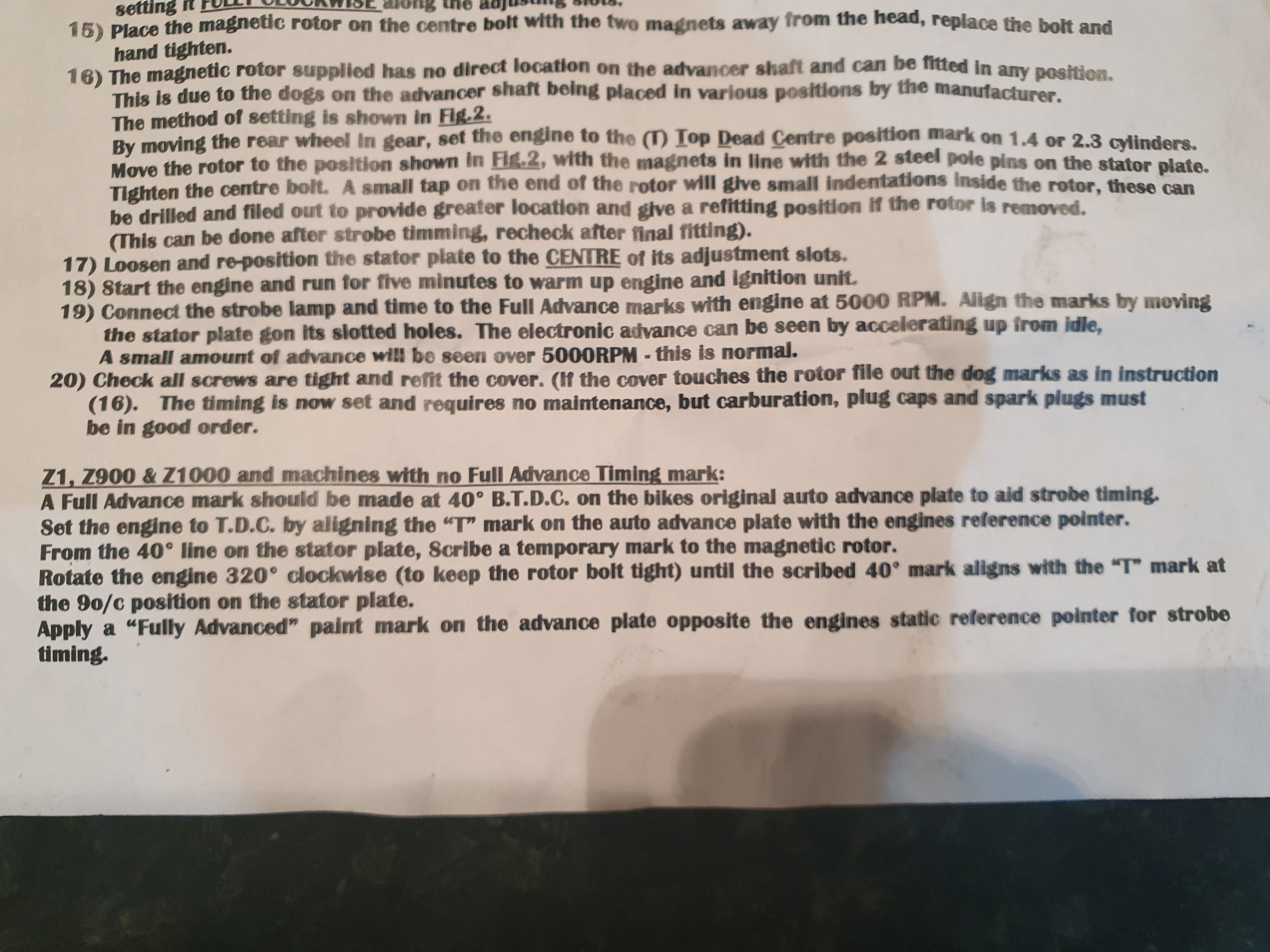 It's the strobe timing which is spinning my head! First read through of instructions I thoughts they meant the F mark but they mean Full advance at 5000rpm. Very bottom of instructions page states that Z1000 may not have Full Advance mark and explains how to do it.