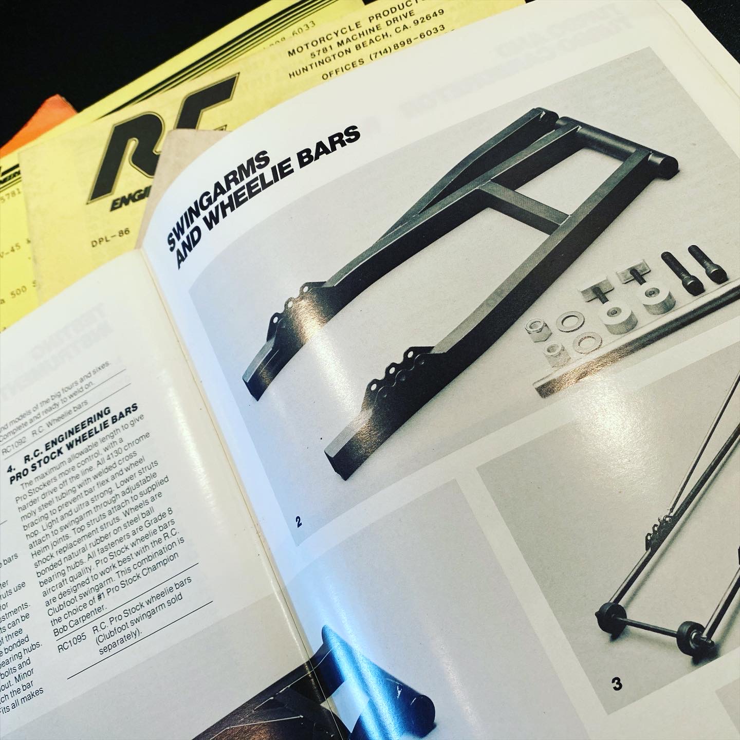 Received these original RC Engineering catalogues today. Trying to identify some older parts is sometimes a challenge. Now know the origin of the swing arm Im using and also dealer price lists have part numbers for future treasure hunts!!
