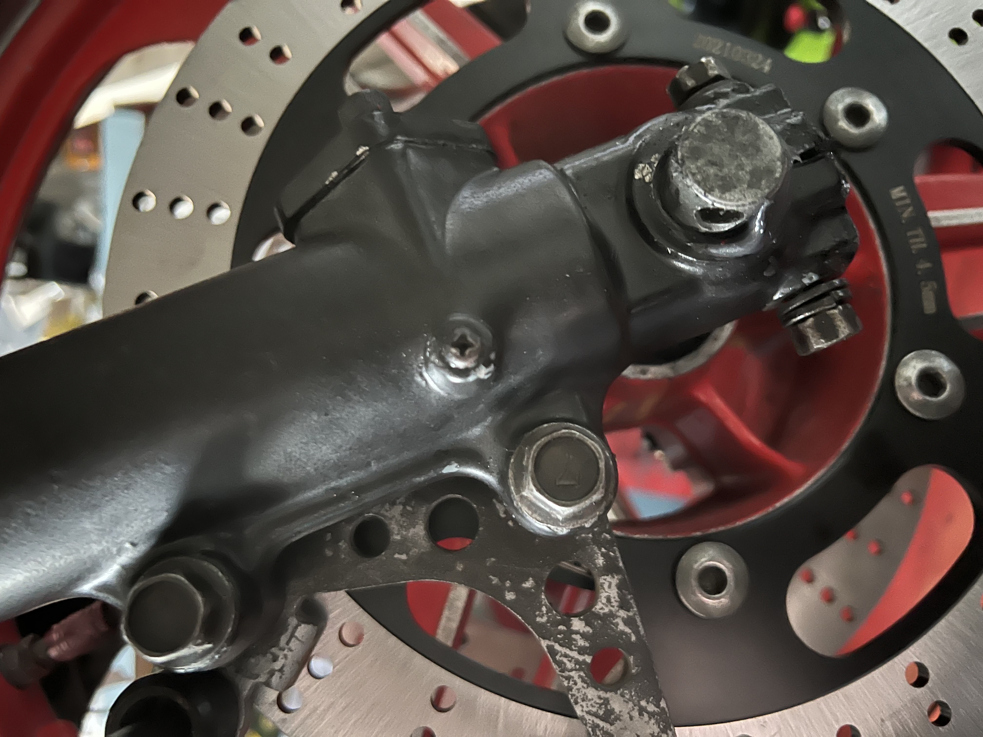 it look like i may have the bottom fork legs off a gpz750 and caliper brackets from a 1100 and the discs i think i may have some lower fork legs for the GPZ so will have a look at swapping one over and trying again that's if the internals are the same