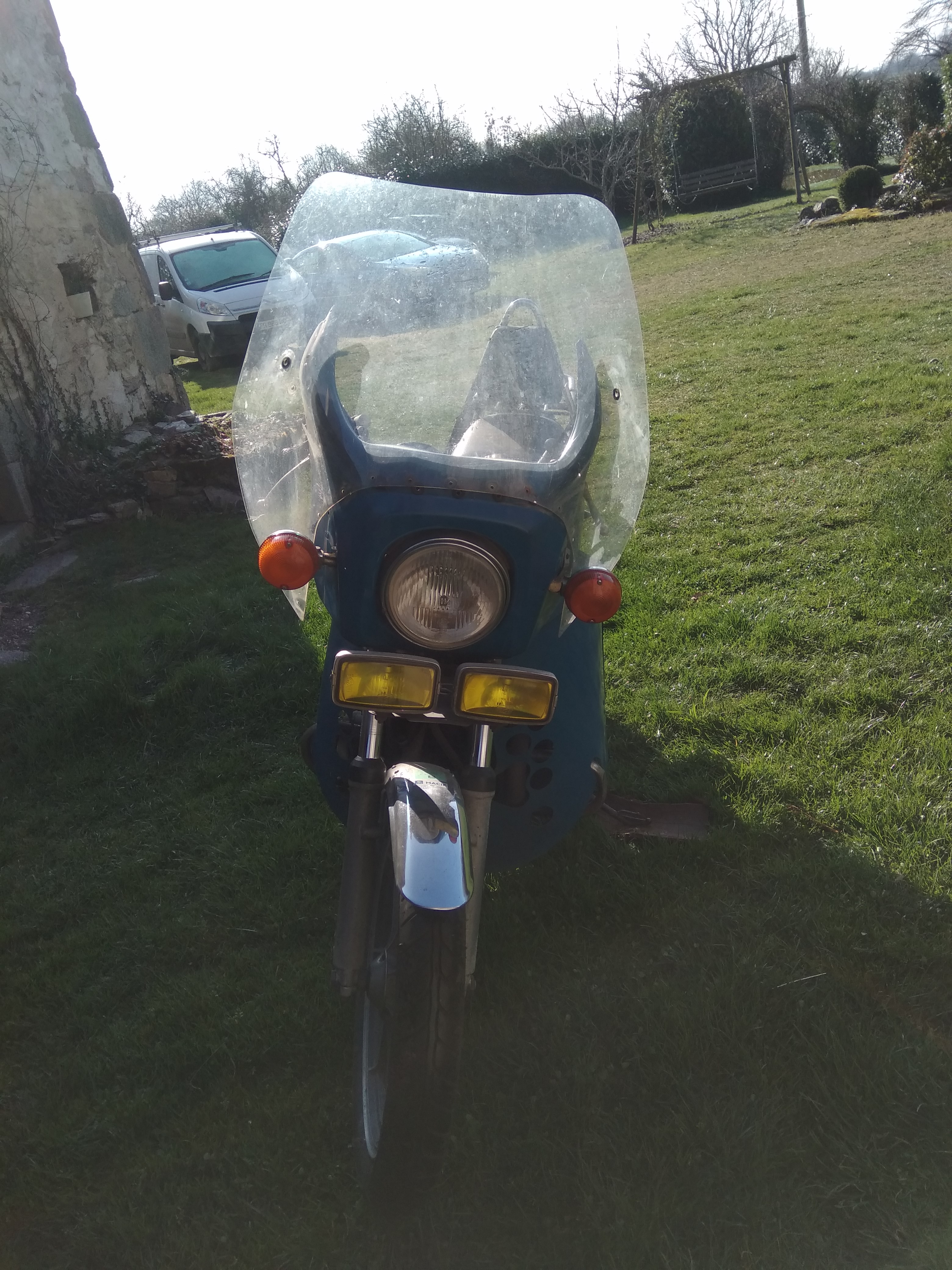 Well just got back from Paris with it. He was an aircraft technician and made the lower front and rear 'fairings' . The screen and headlight fairing is enormous. I had to take the screen off to fir it in the van. Unfortunately someones hacksawed the rear mudguard but I have a box of bits that include rear indicators, spark plugs, a cable and an almost complete engine gasket set. Almost complete because he said he'd done the valve clearances and changed the timing chain tensioner. Not heard it running yet but it came off the road just over a year ago. Inside of the tank is clean.....but it still has petrol in it.