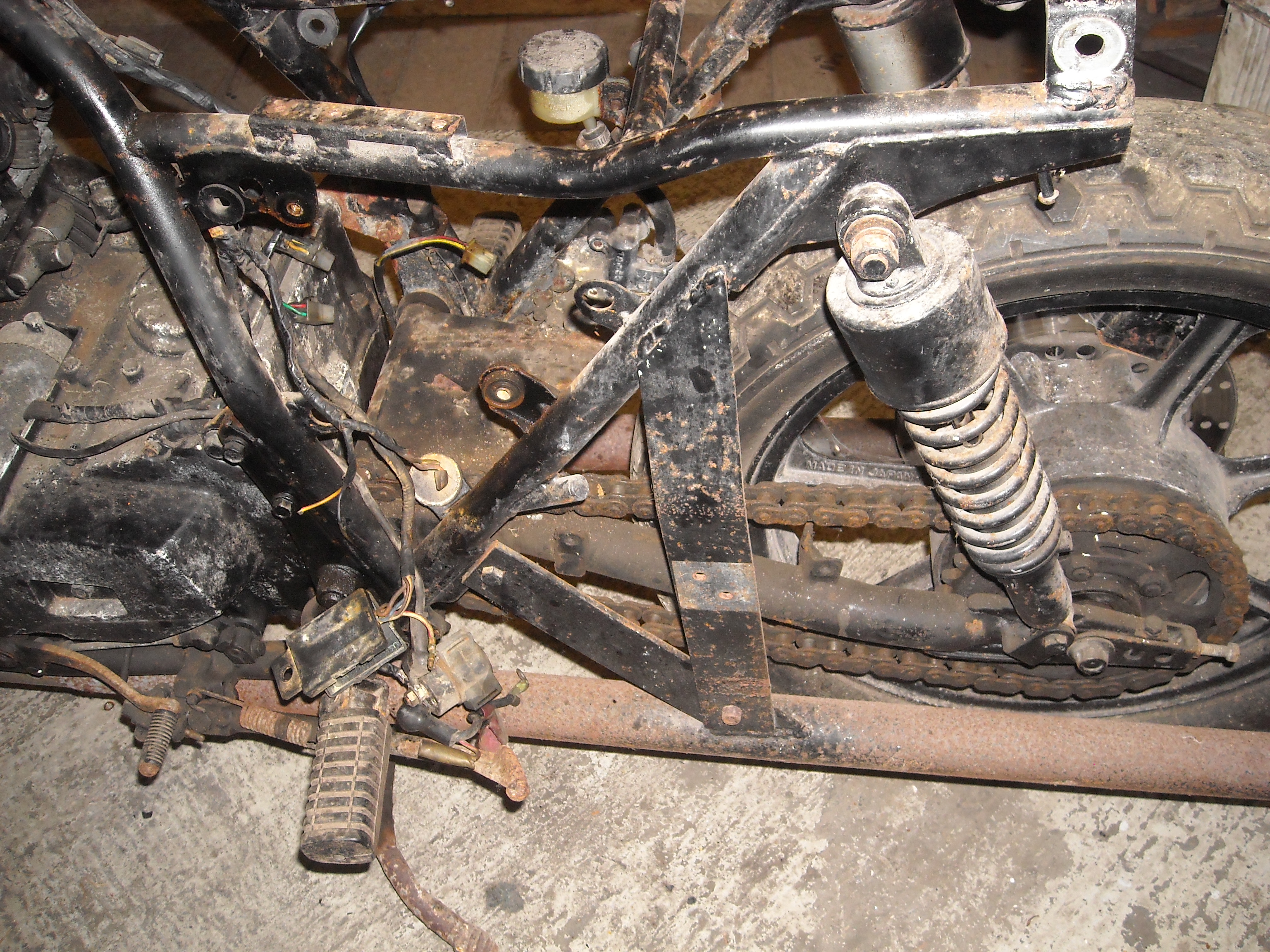 The rear part of the frame was cut off and one of the previous owners made a "bobber" out of it.