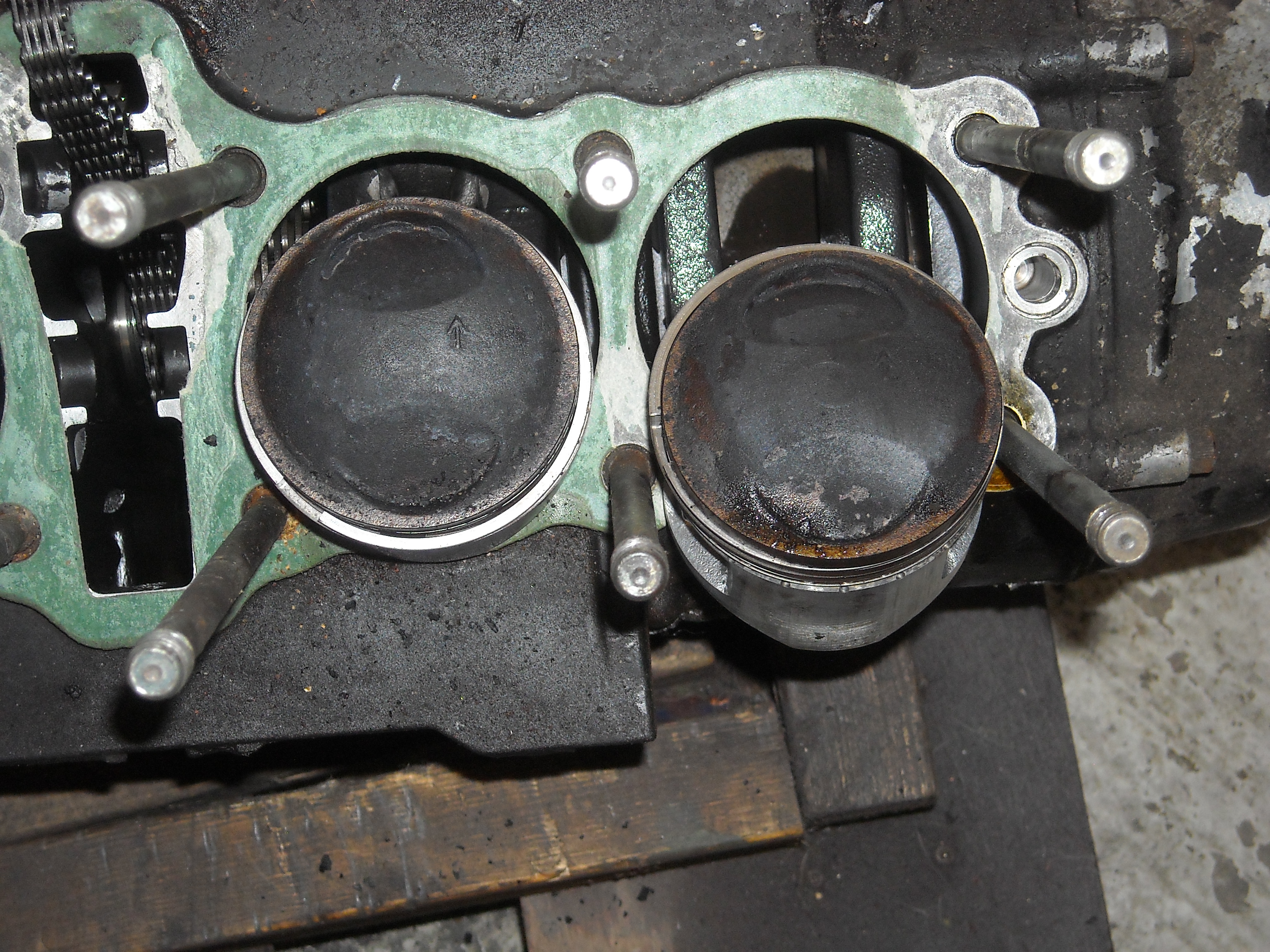 I couldn't see any scoring marks of the valves on the pistons that were mounted backwards but when I remove the valves from the head I'll have to check them in order to see if they aren't bent.