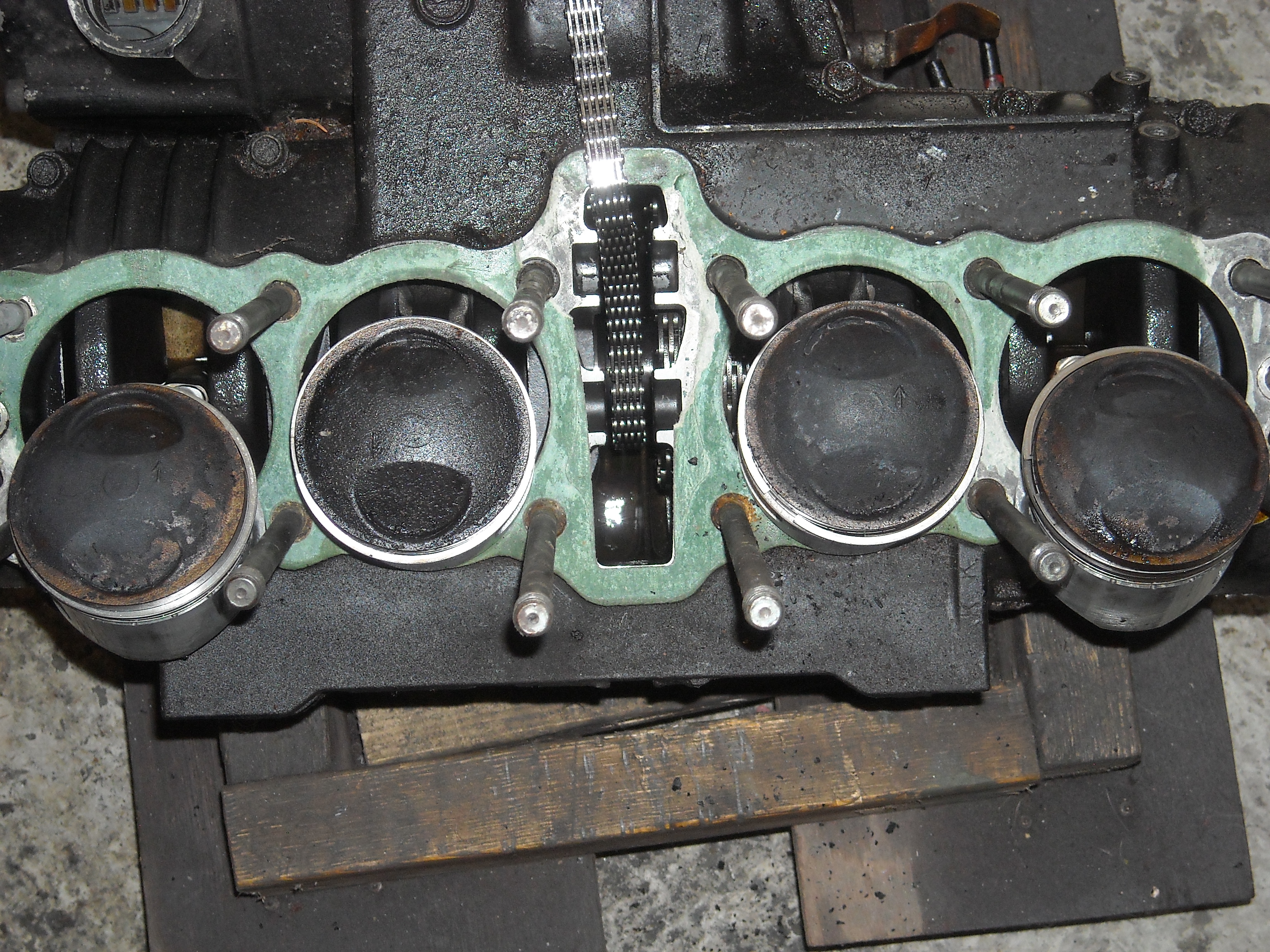 After removing the camchain tensioner and the camshafts I started with unbolting the cylinderhead.