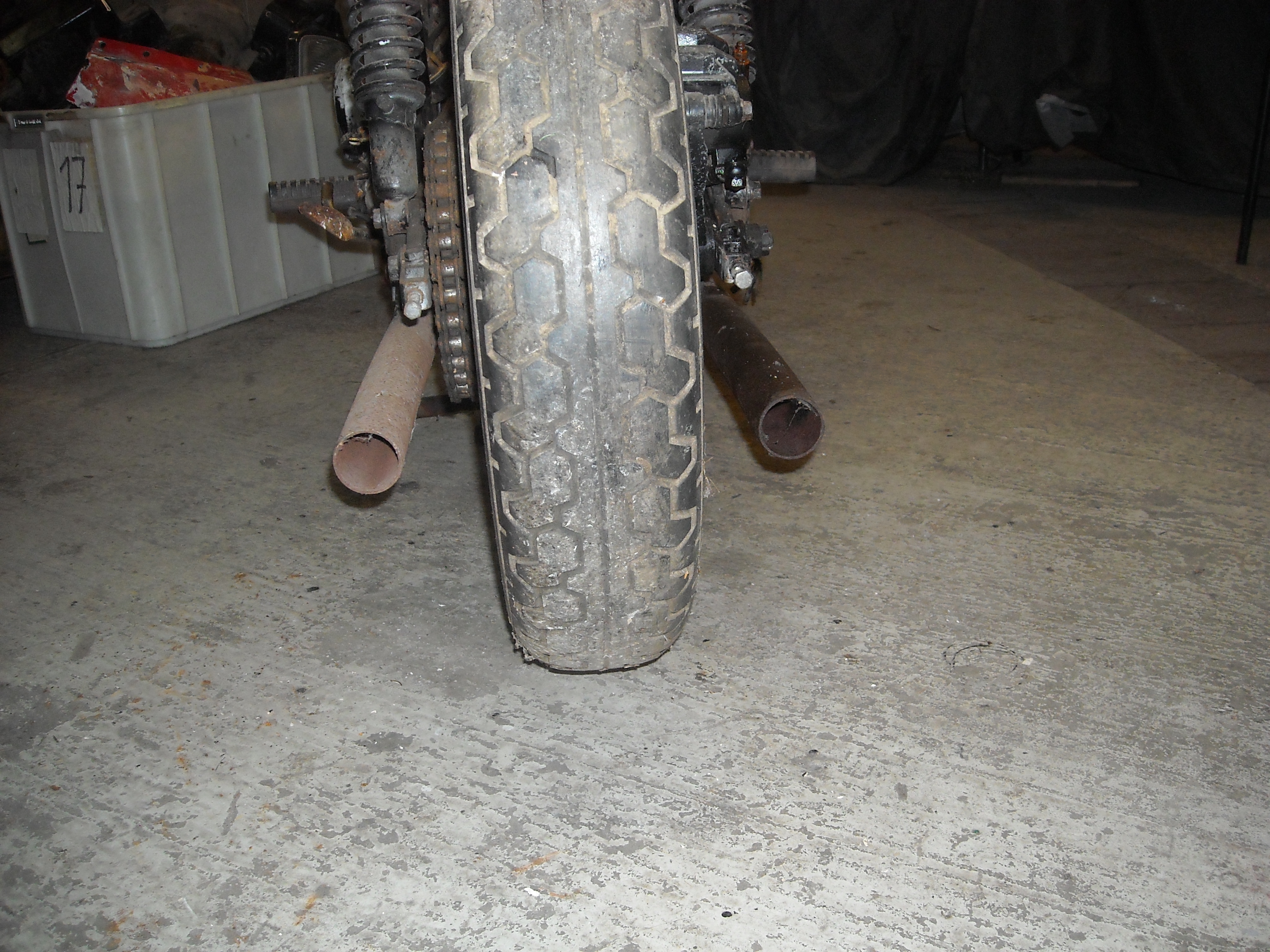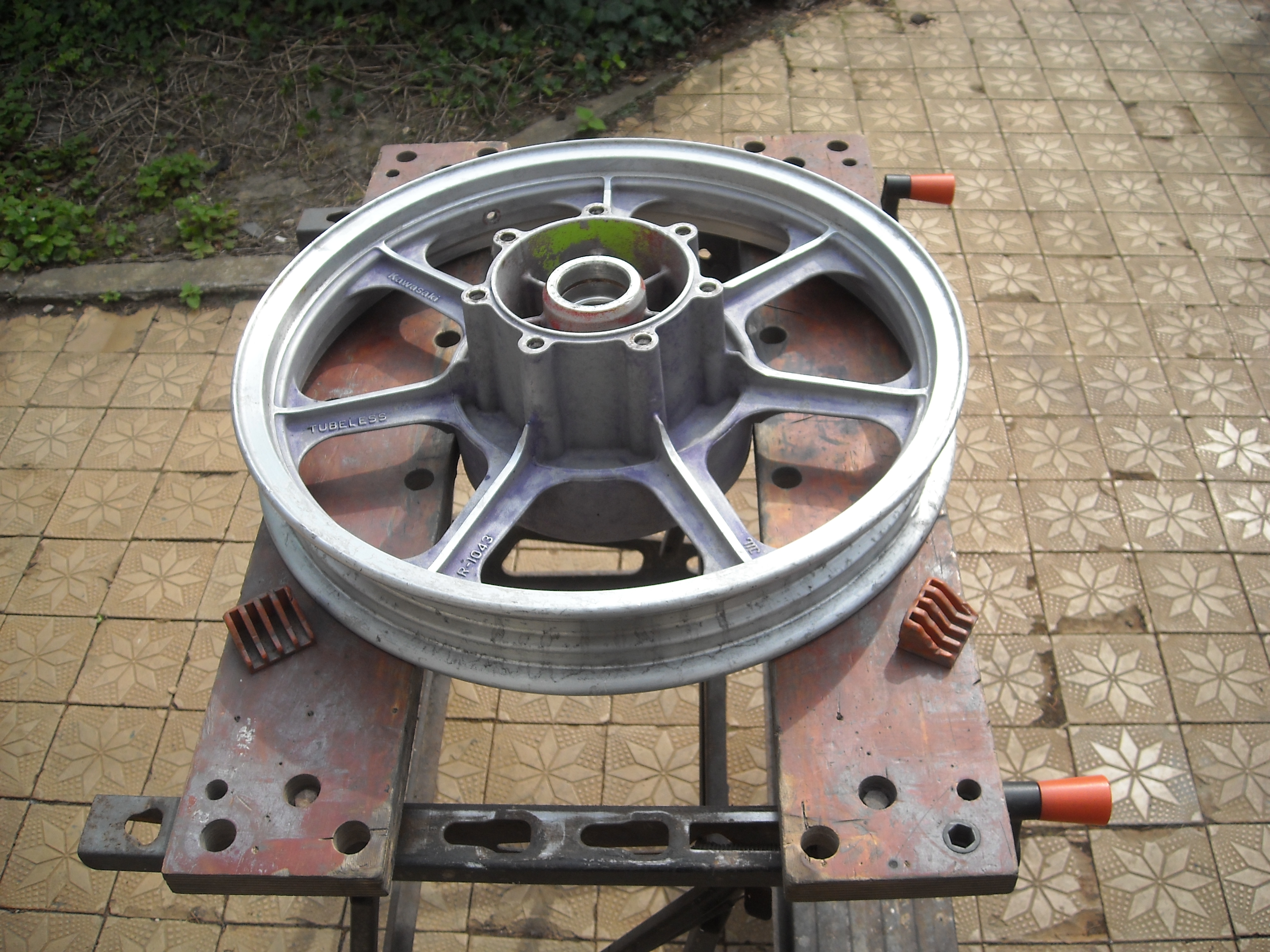 As you can see the front wheel is partially cleaned, the rear wheel is as I got it.
