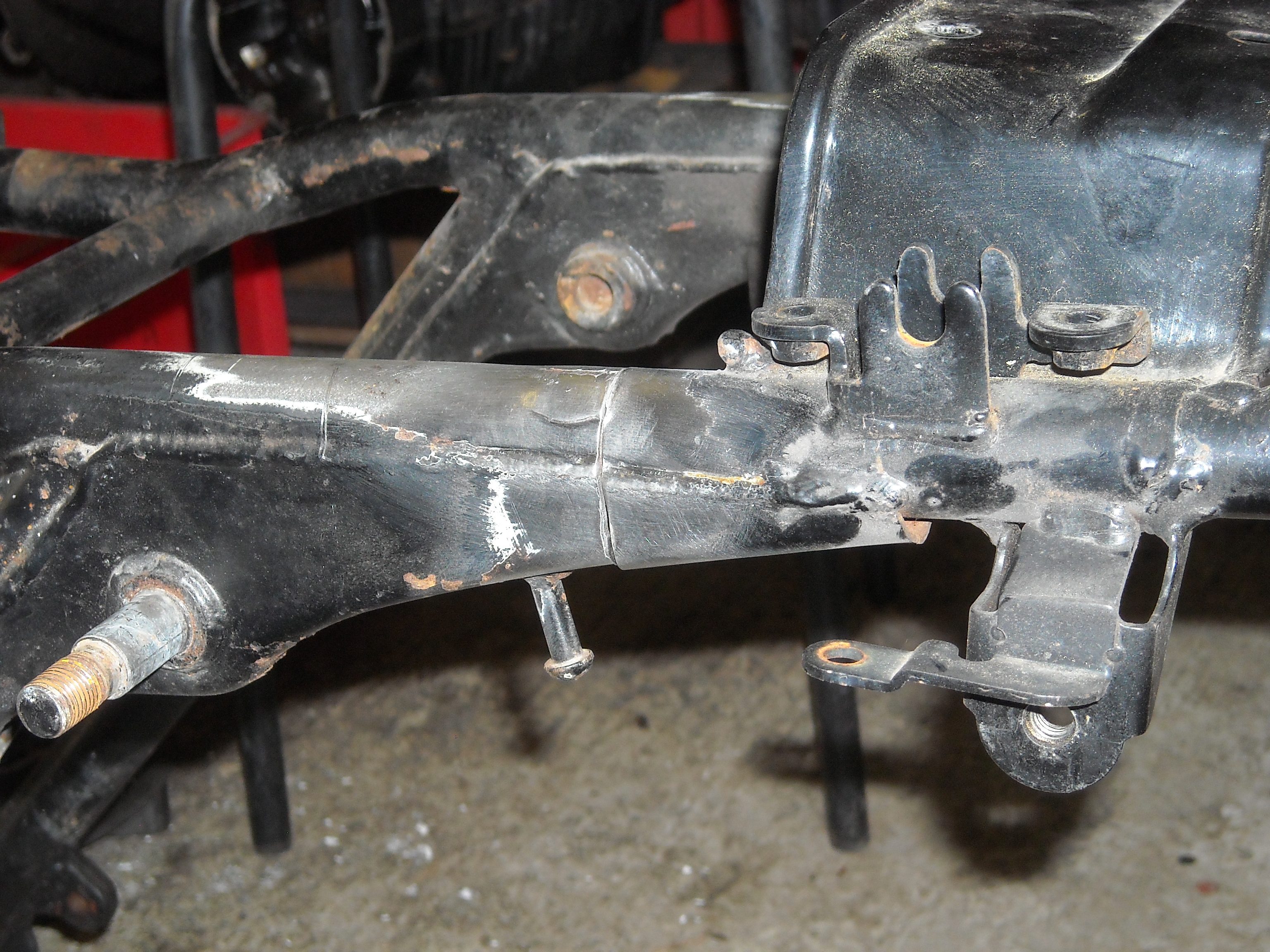 When you cut off a part of a frame, you end up with an open steel tube. How can you fill that hole? With body putty ofcourse, what else?