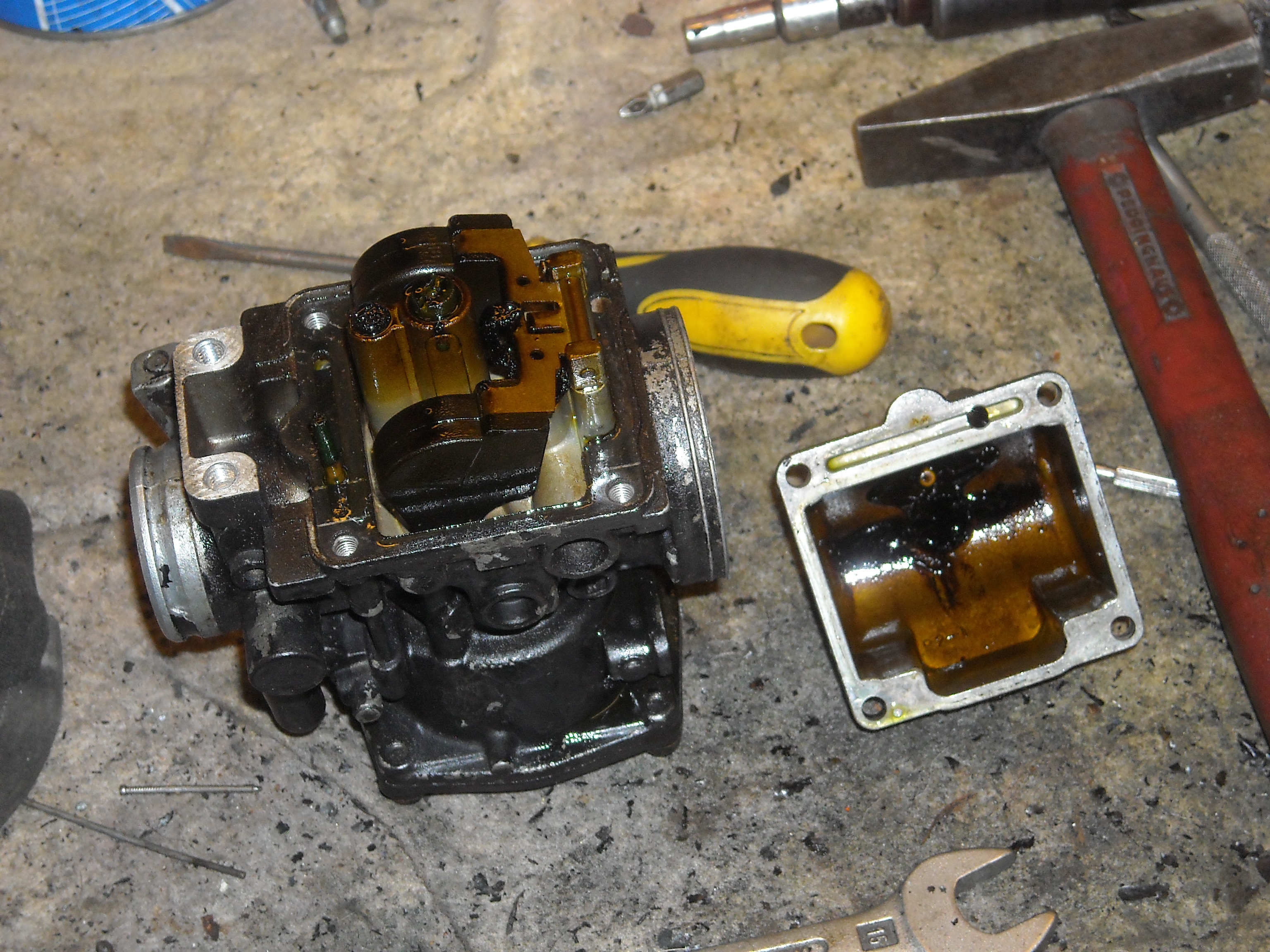 The inside of the float bowl was dirty, greasy and very sticky.