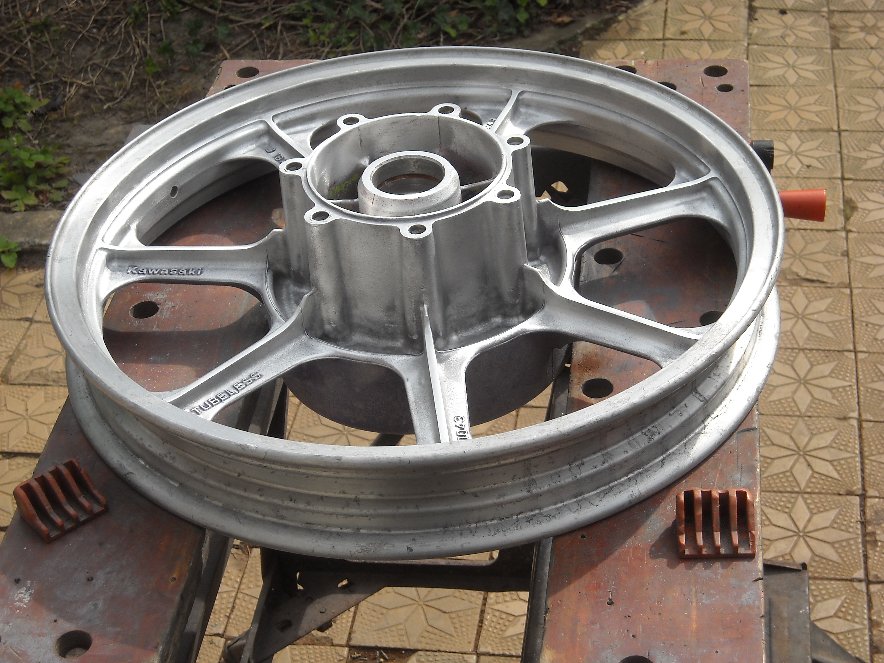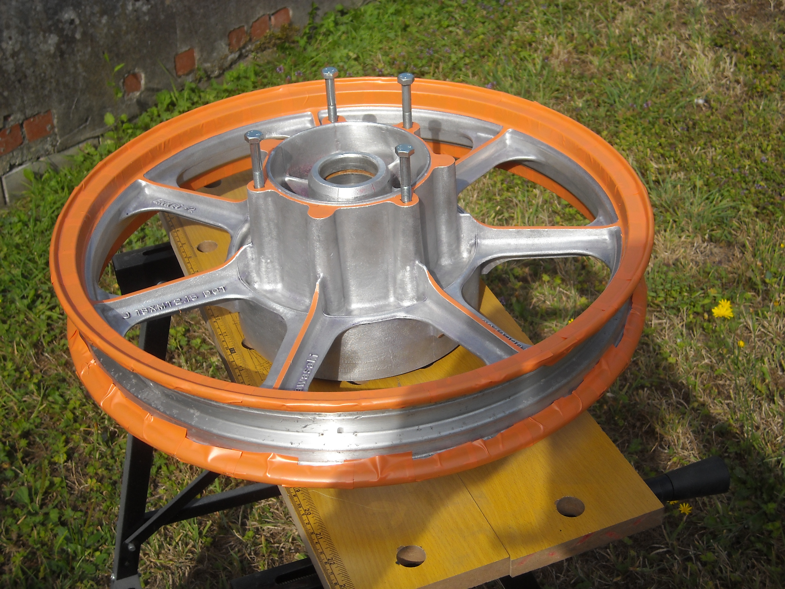 Now I only have to polish the rims and then I can degrease the wheels, tape the parts off that need to stay bare aluminium and spray them in firecracker red.