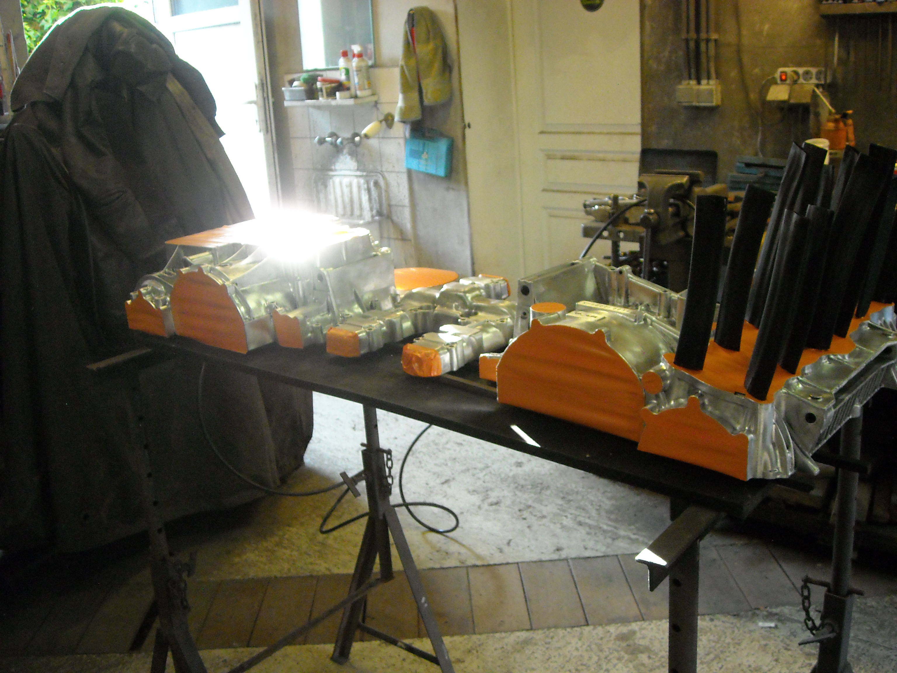 When the paint is fully cured the cylinder barrels will be mounted, the valves will be placed in the cylinder head and then the engine can be assembled completely.