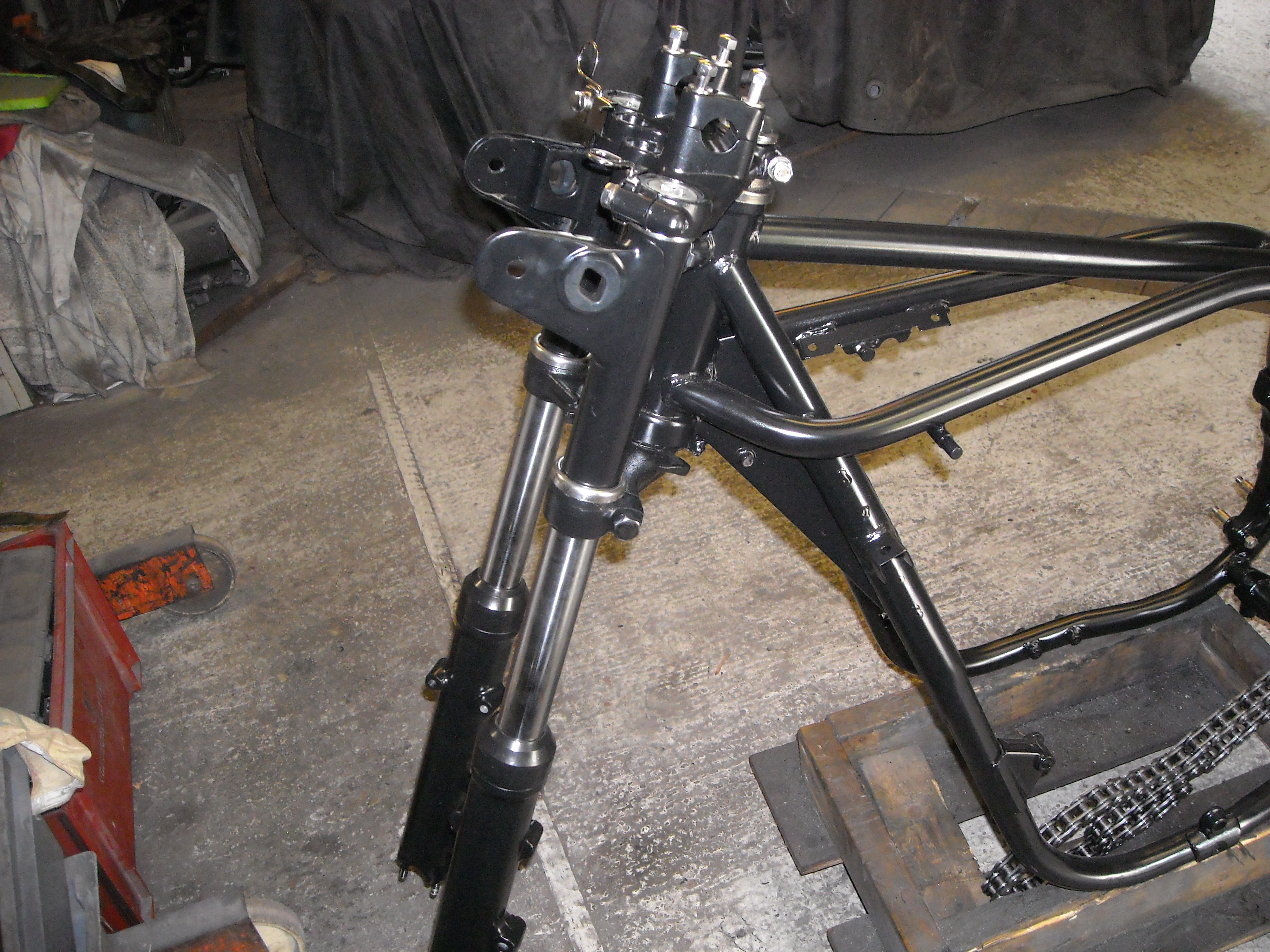 Then the yoke was mounted with new conical roller bearings and the fork stanchions were assembled too.
