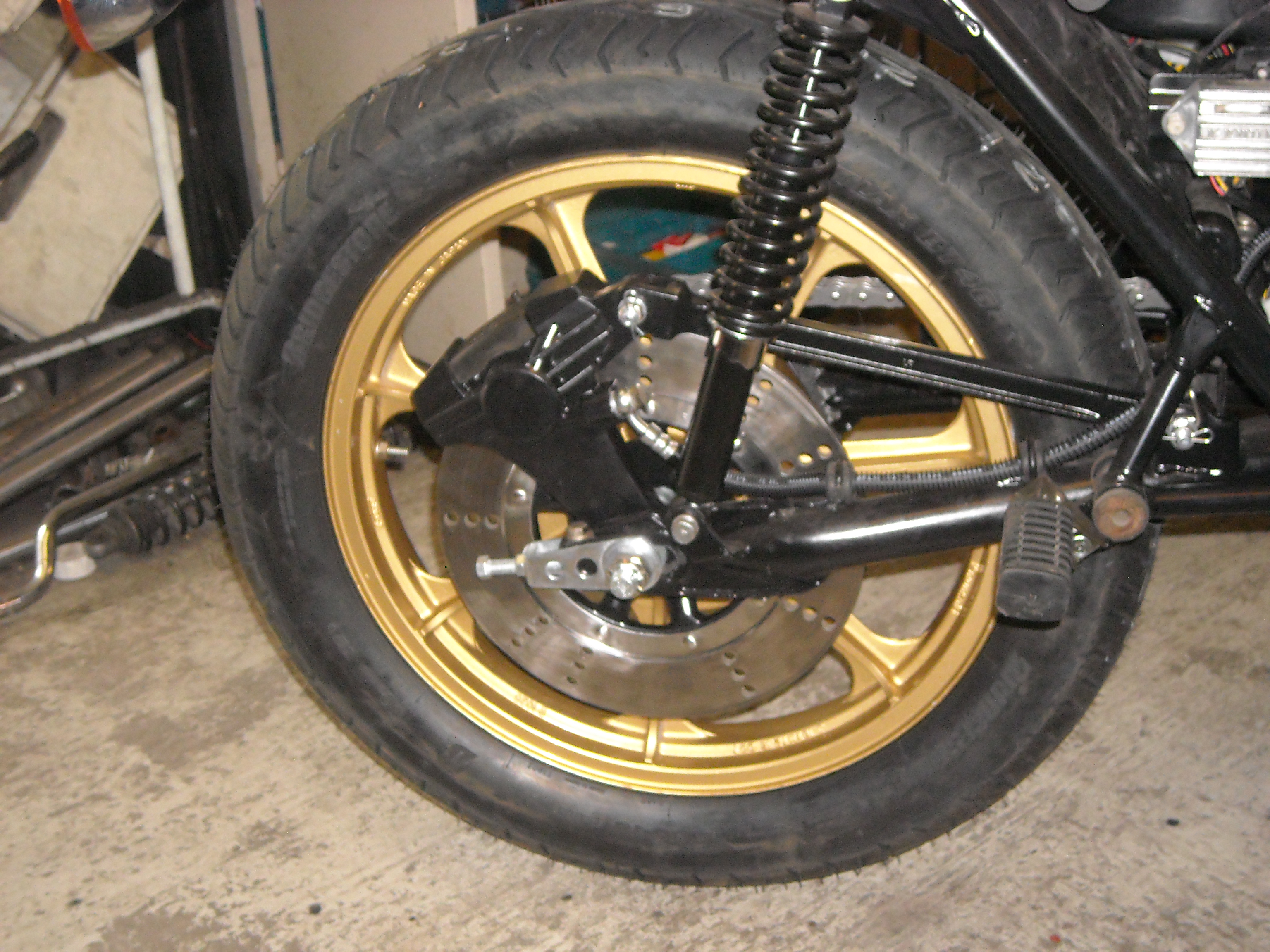 On friday I started adding the brake rotors on the front wheel and the axle so I could mount the front wheel under the fork legs.