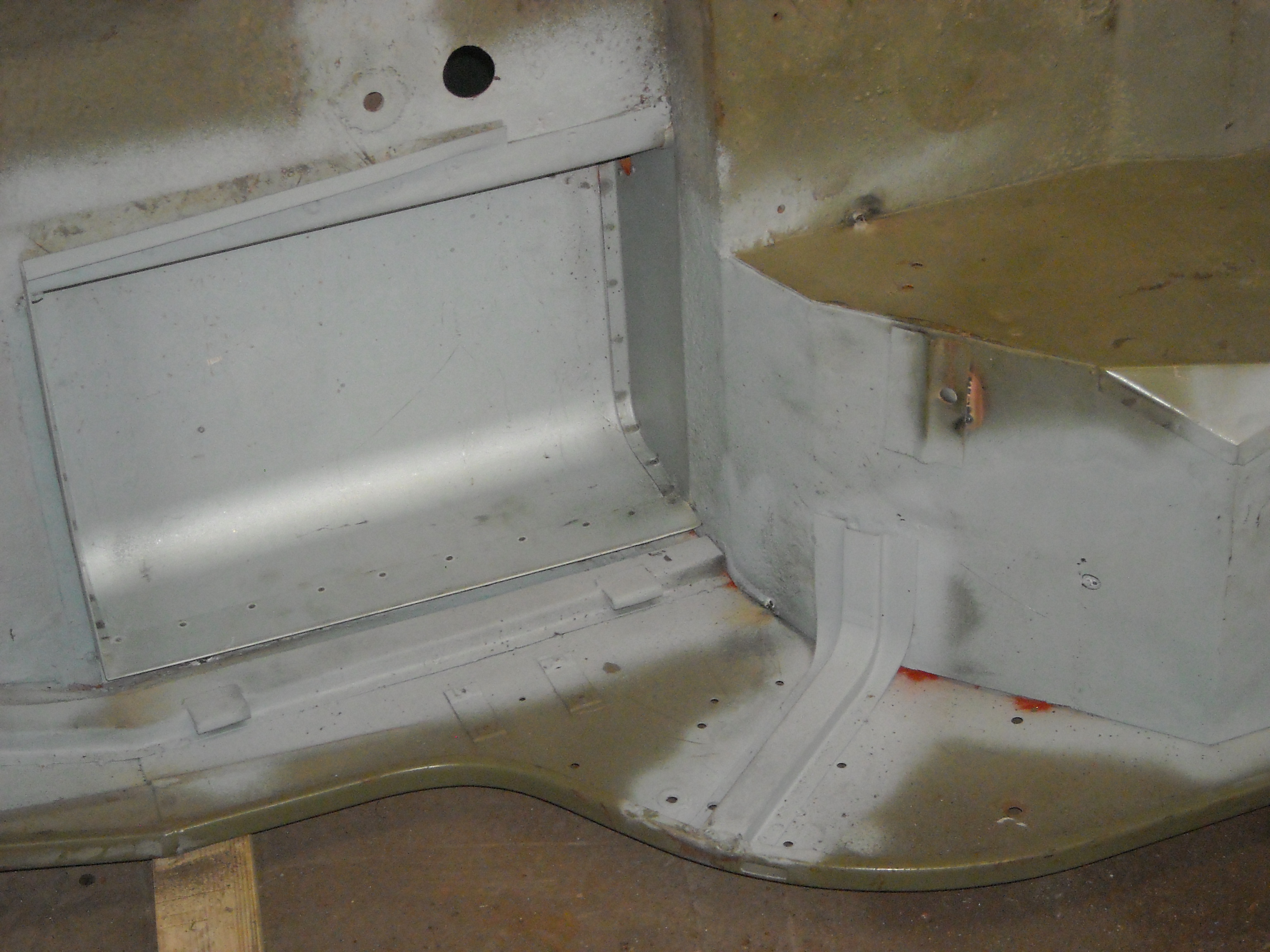 - the underside of the body tub is grinded to the bare metal and received two layers of red oxide primer