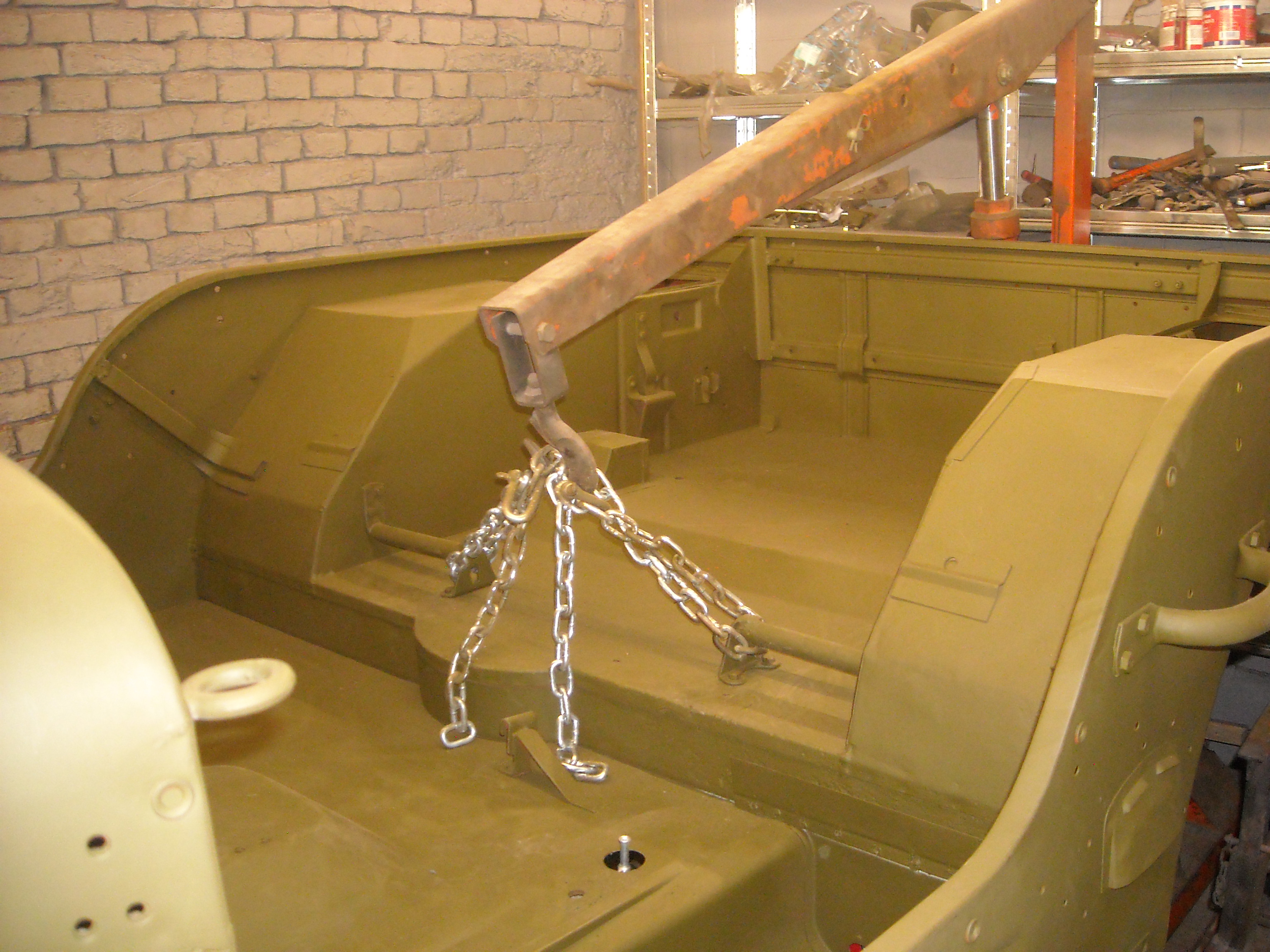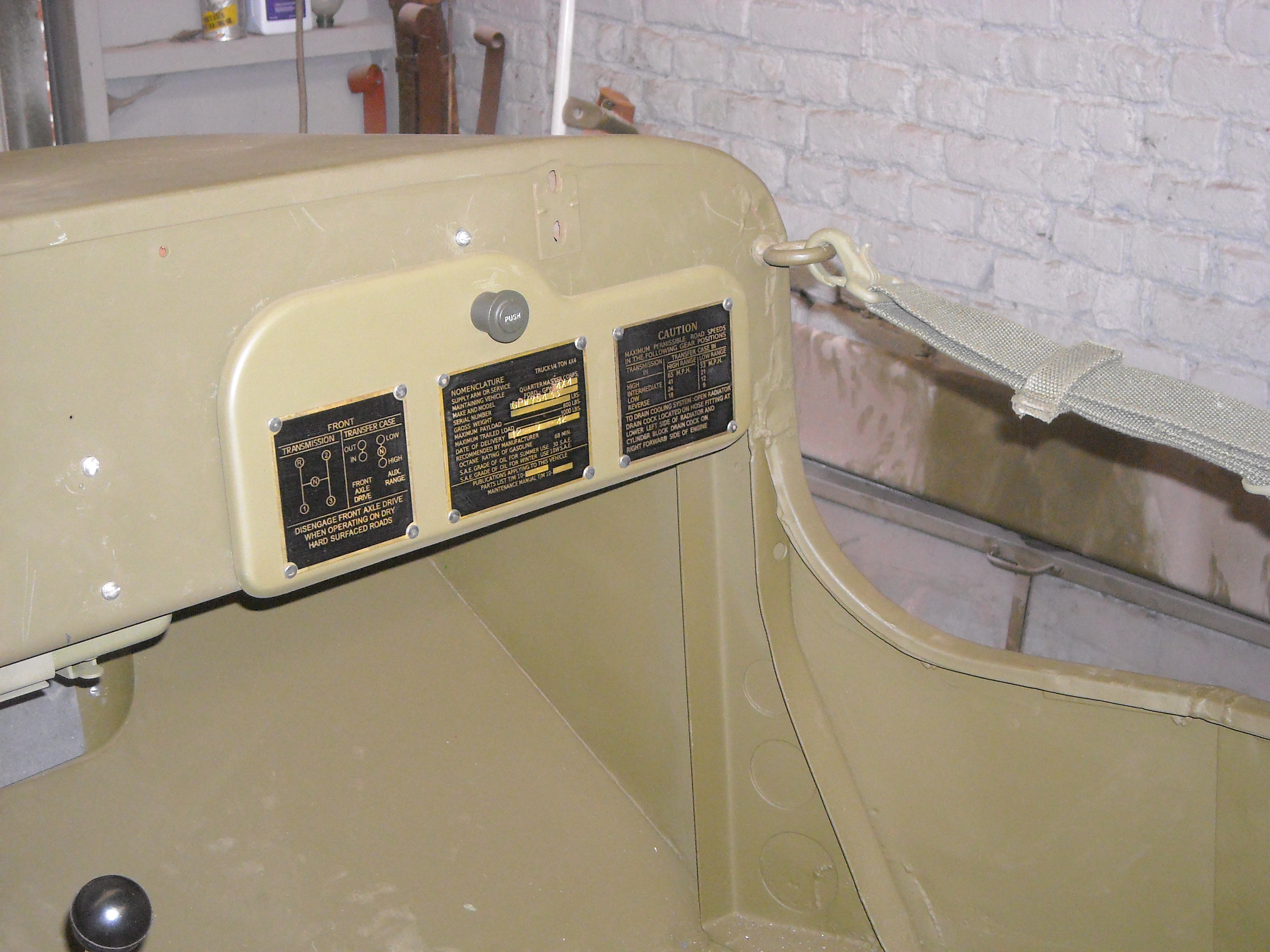 The lid of the glove box compartment received the correct (1942) data plates and was attached to the dash board.