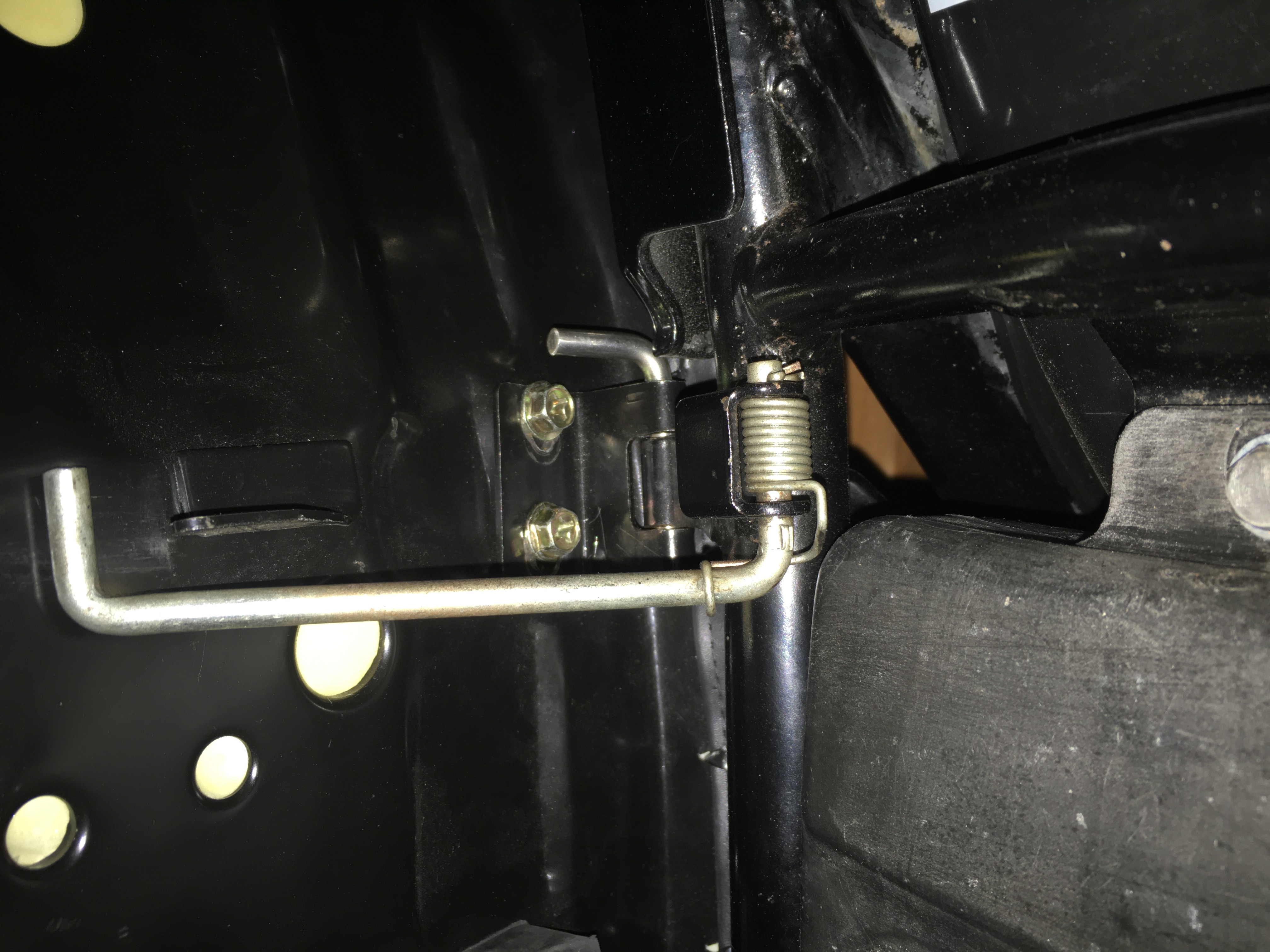 Thanks for the replies - I do have the right bracket on the frame. - the spring nicely fits within it and the longer arm of the stopper is just the right length. Its how it interacts with the seat which has got me scratching my head. I have a Giuliari 2/4 seat on it at the moment and I'm thinking that it could lack a bracket maybe??. My repro standard seat doesn't have anything else under it though.