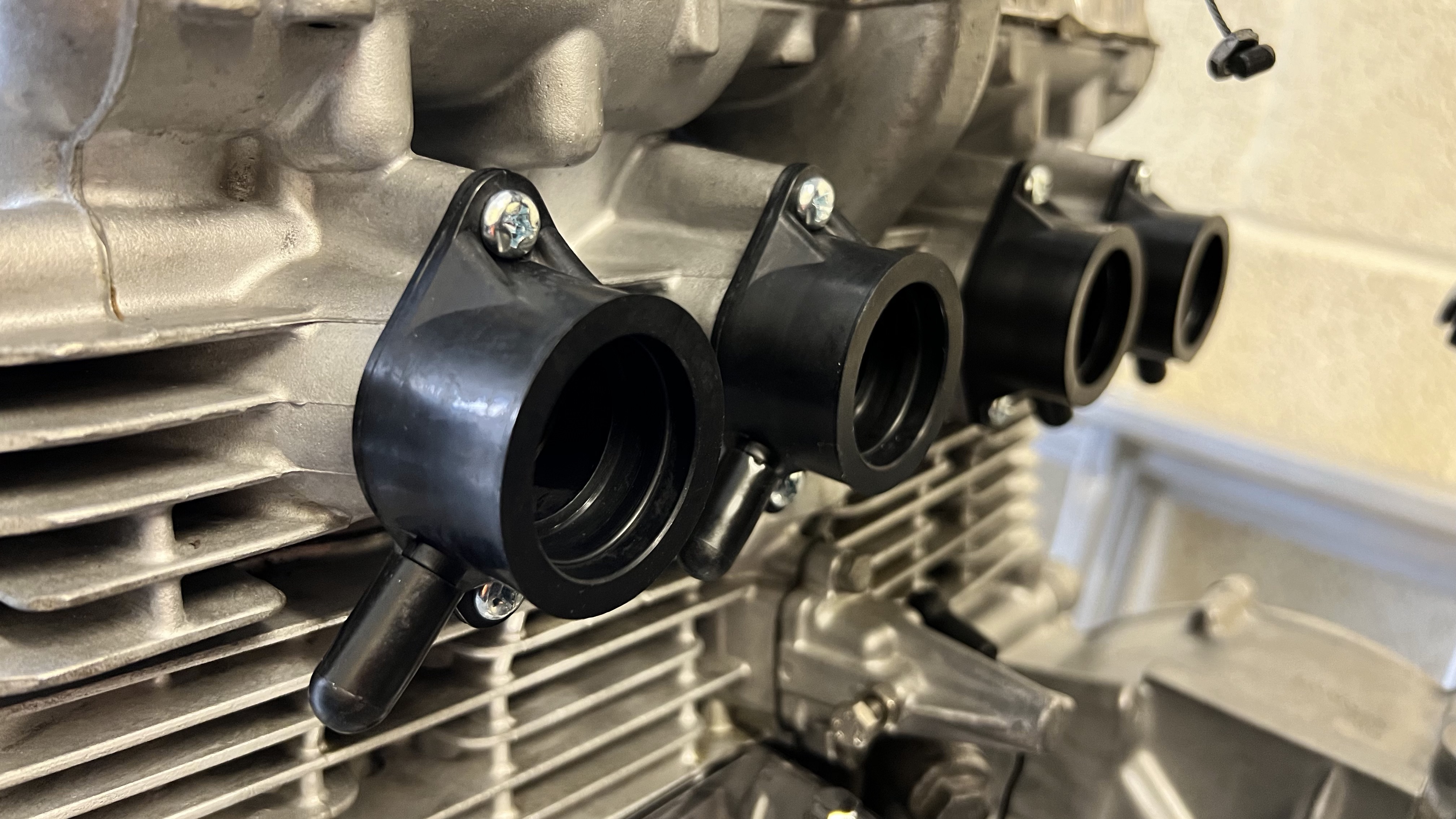 New carb to head rubbers fitted. The ones that were on the bike were rock hard and by the looks of it, not making a particularly satisfactory seal against the head. The offtake blanks were also hard and cracked, so definitely needed replacing.