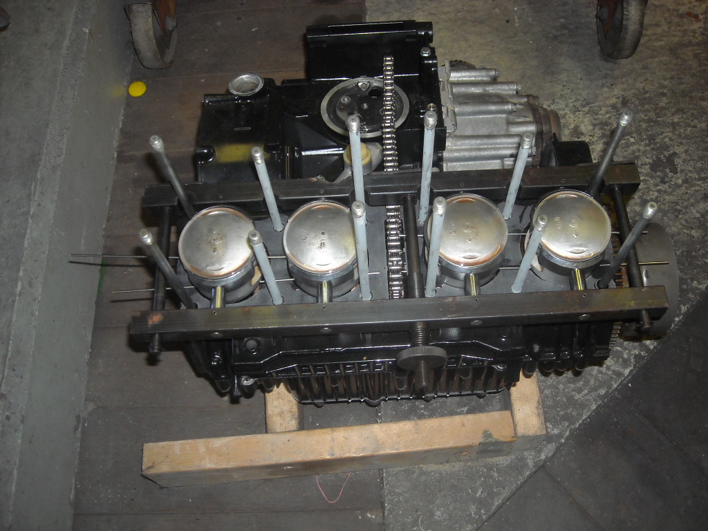 The cilinderhead was mounted on the engine after assembly and after shimming up.