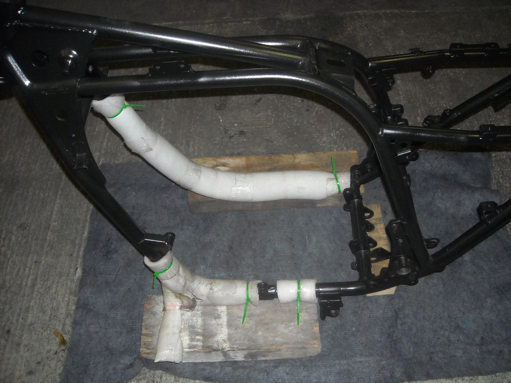 I covered the frame tubes with old protection foam from a 4 in 4 exhaust and secured them with plastic strips. The risk of scratching the new paint on the frame is reduced in that way.