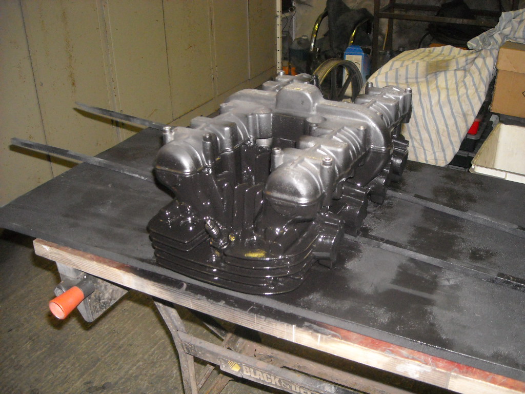 Once this was done I sprayed the cilinderhead with heat resistant paint.