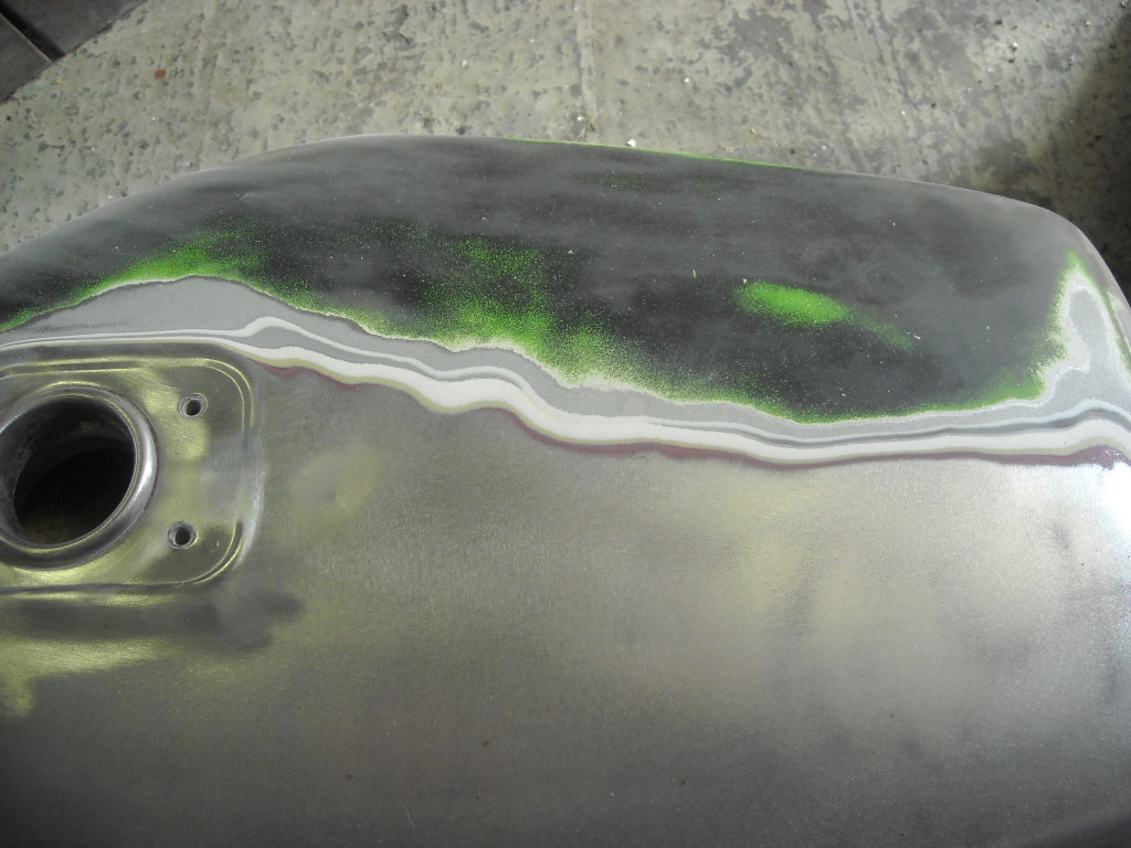 It's amazing to see how many layers of paint are on. On this fuel tank there were 9 different layers.