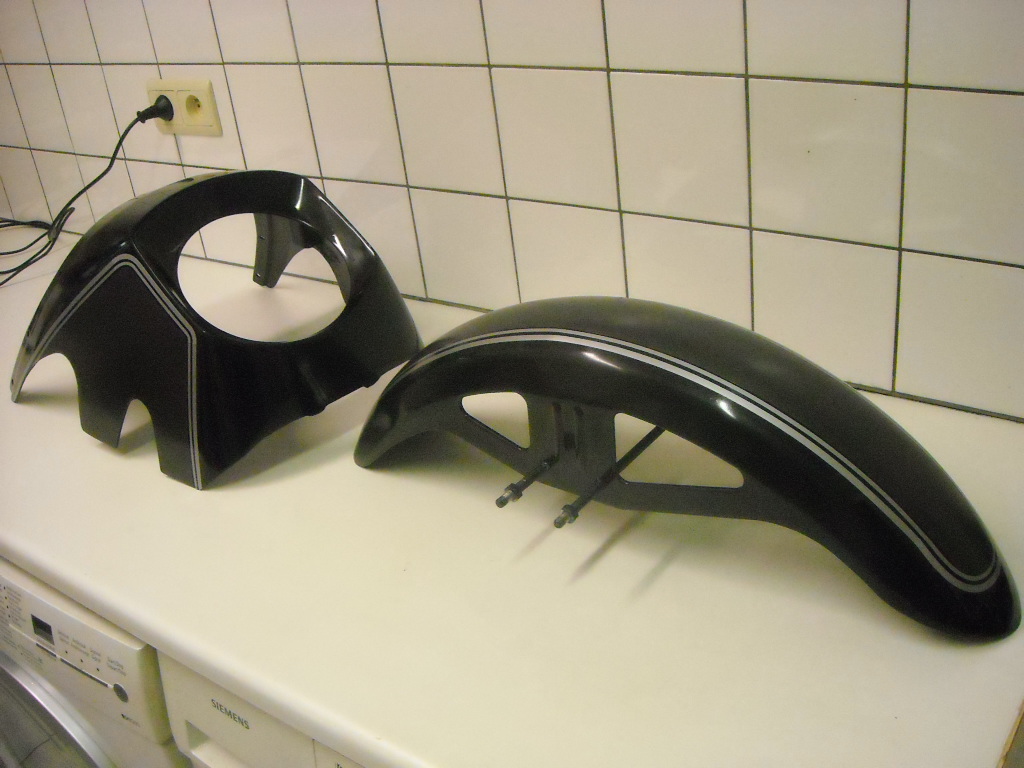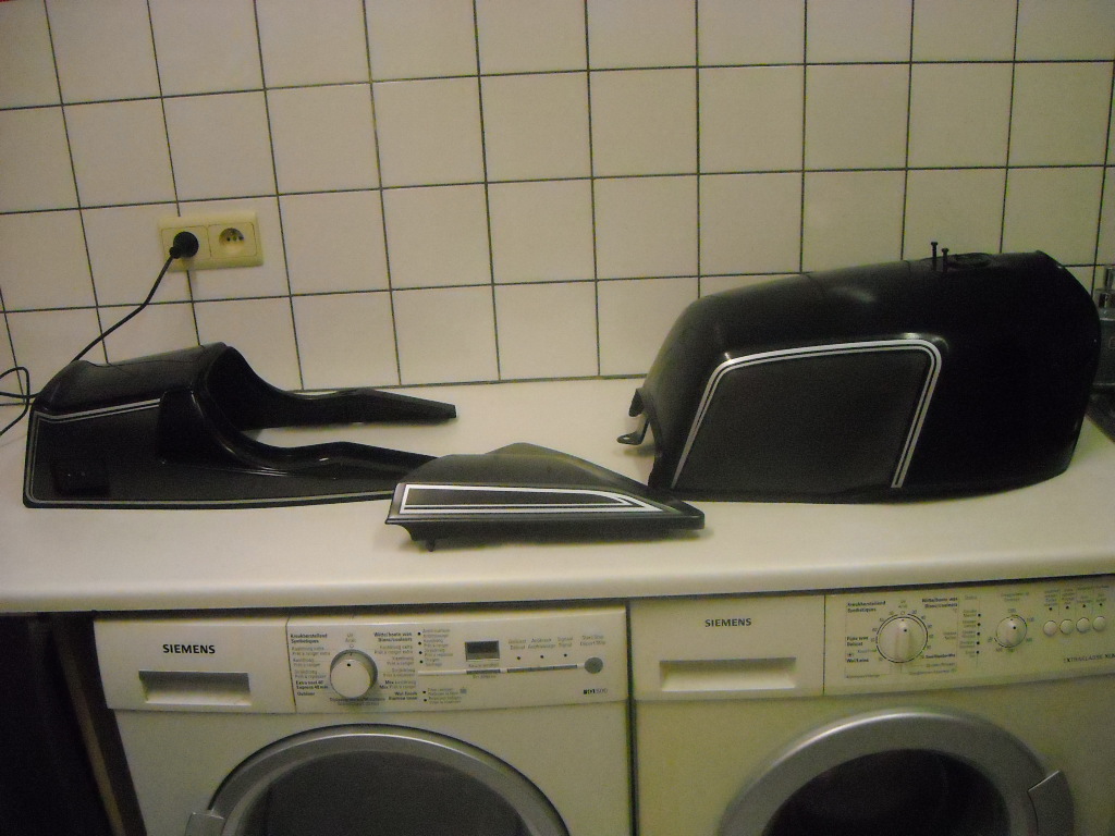 in between the work on the frame and engine I allso did some bodywork. The fuel tank, side panels, the tail piece, the front mudguard and the fairing of a Z1R.