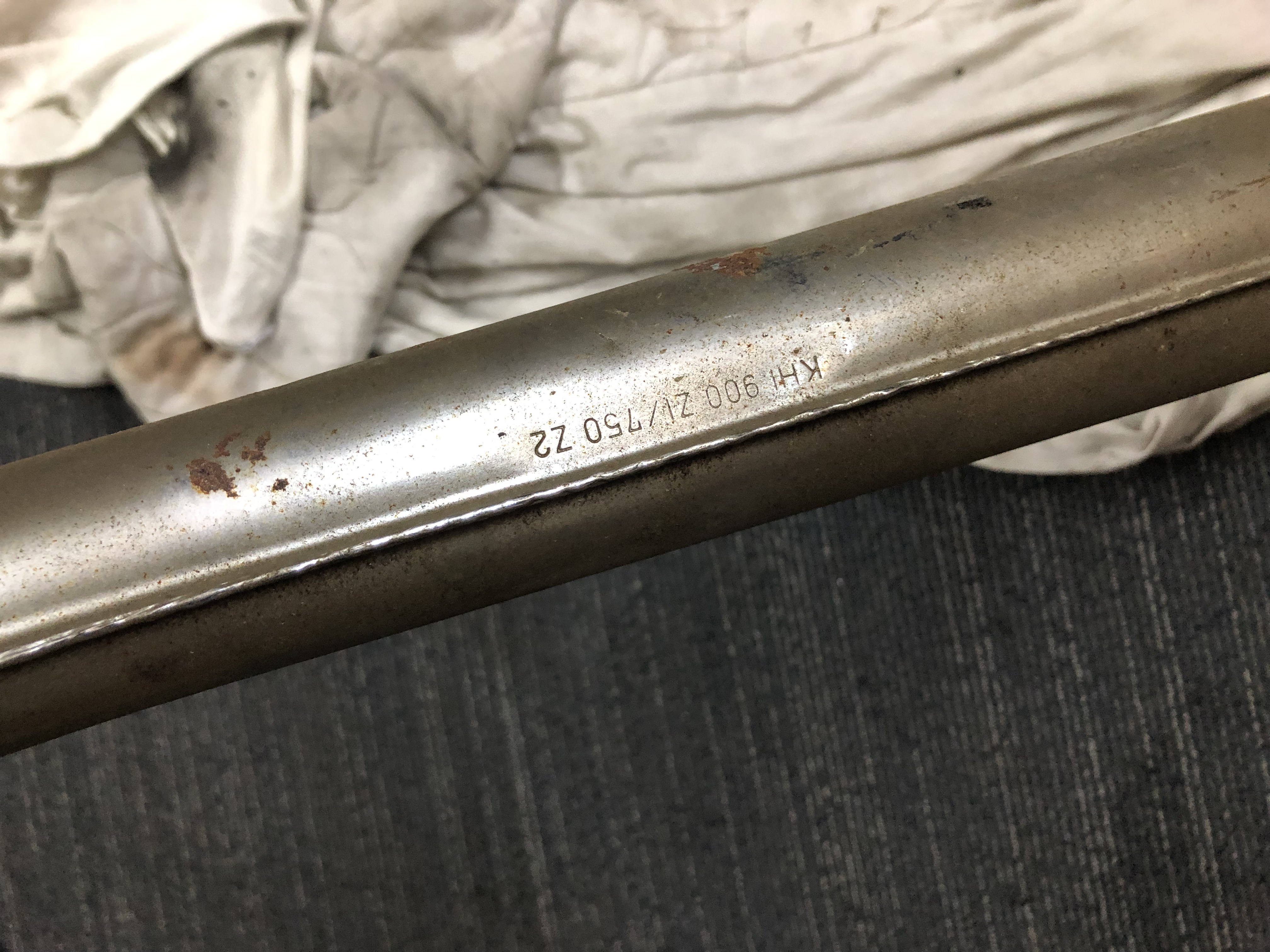 Hard surface rust was removed with a brass hand brush (light pressure applied with some WD40 as a lubricant). Given how rough they looked, I'm pleased with the results. I may well invest in a set of unstamped/no-clip pipes in the new year, but for now, these will do & fit the patina of the bike. Just a shame the lower RH pipe has some damage/rash. I imagine finding a correctly stamped, good condition replacement will be nigh-on impossible.