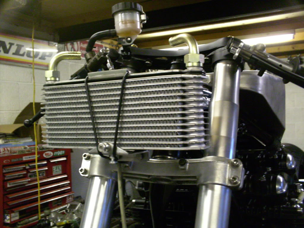 Oil cooler mounting finalised with hooks for retaining strap , just needs a coat of paint to finish