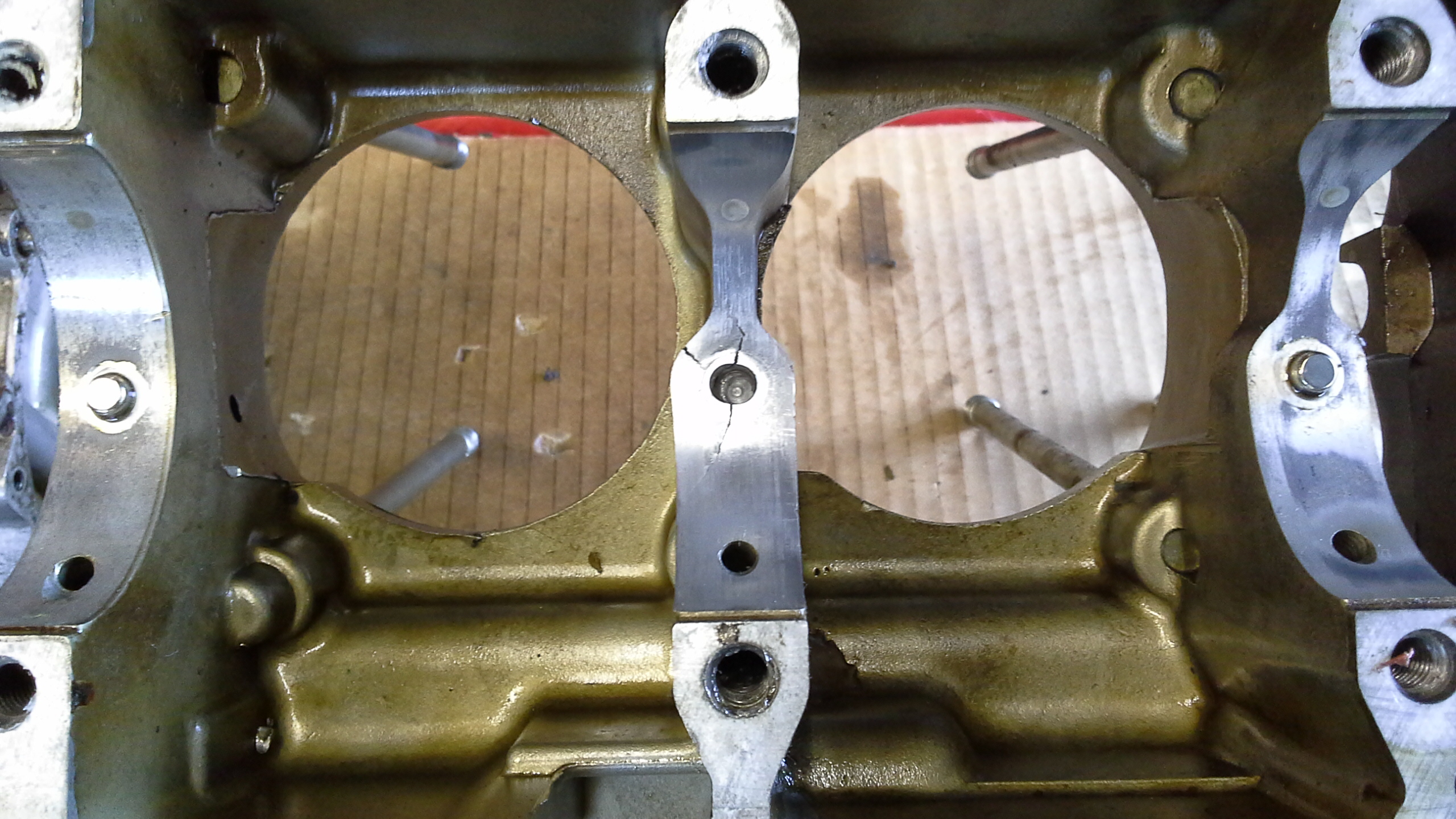 They wrote that the cracks where enlarged with a dremel tool, laser welded and that afterwards the welds were cleaned. Afterwards the cranckcase was machined on a lathe and a new location pin installed.
