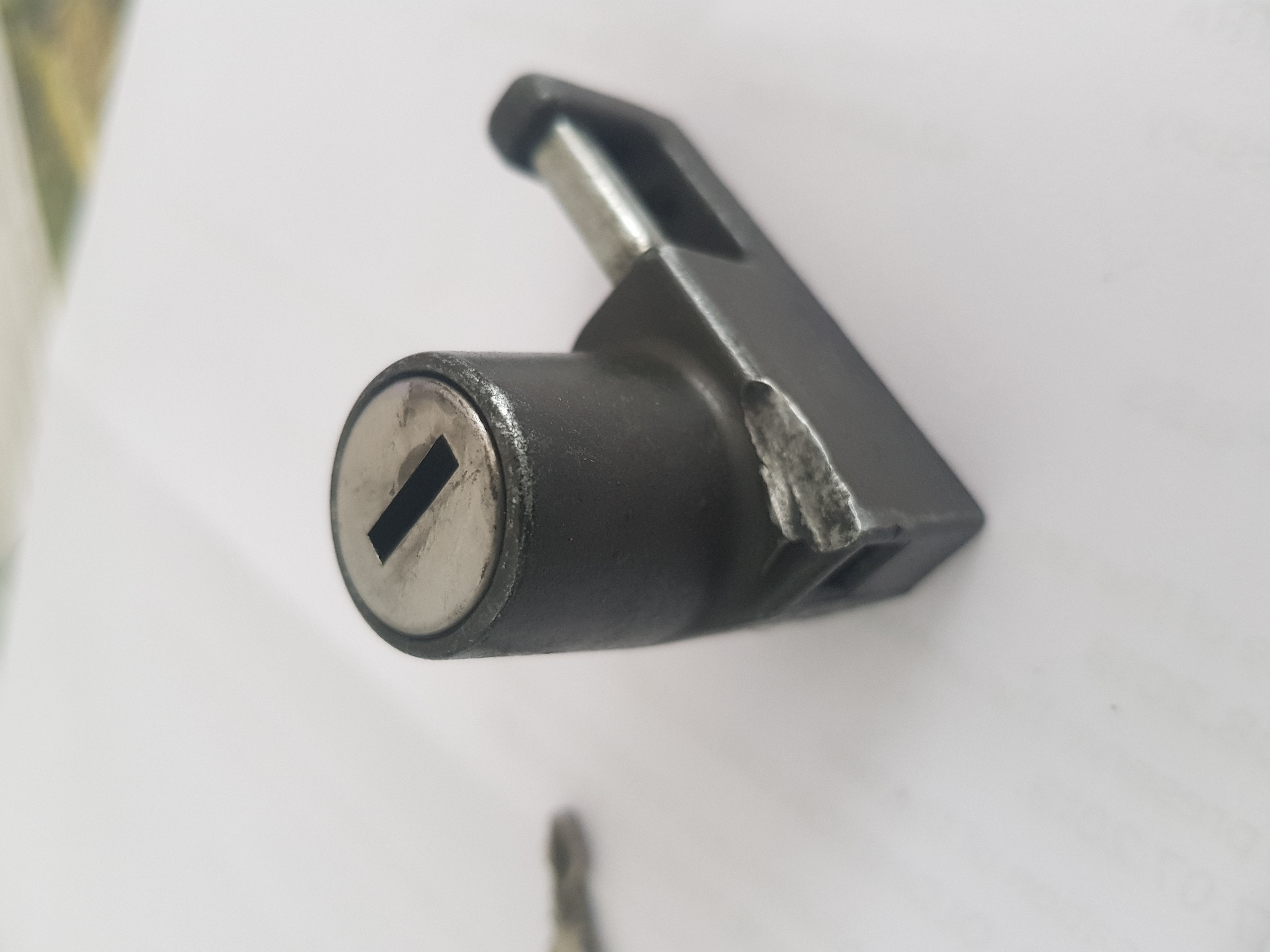 Here is my ZRX helmet lock dismantled - note the larger retaining wafer on right & the 6 slots you can choose from to make key fit.