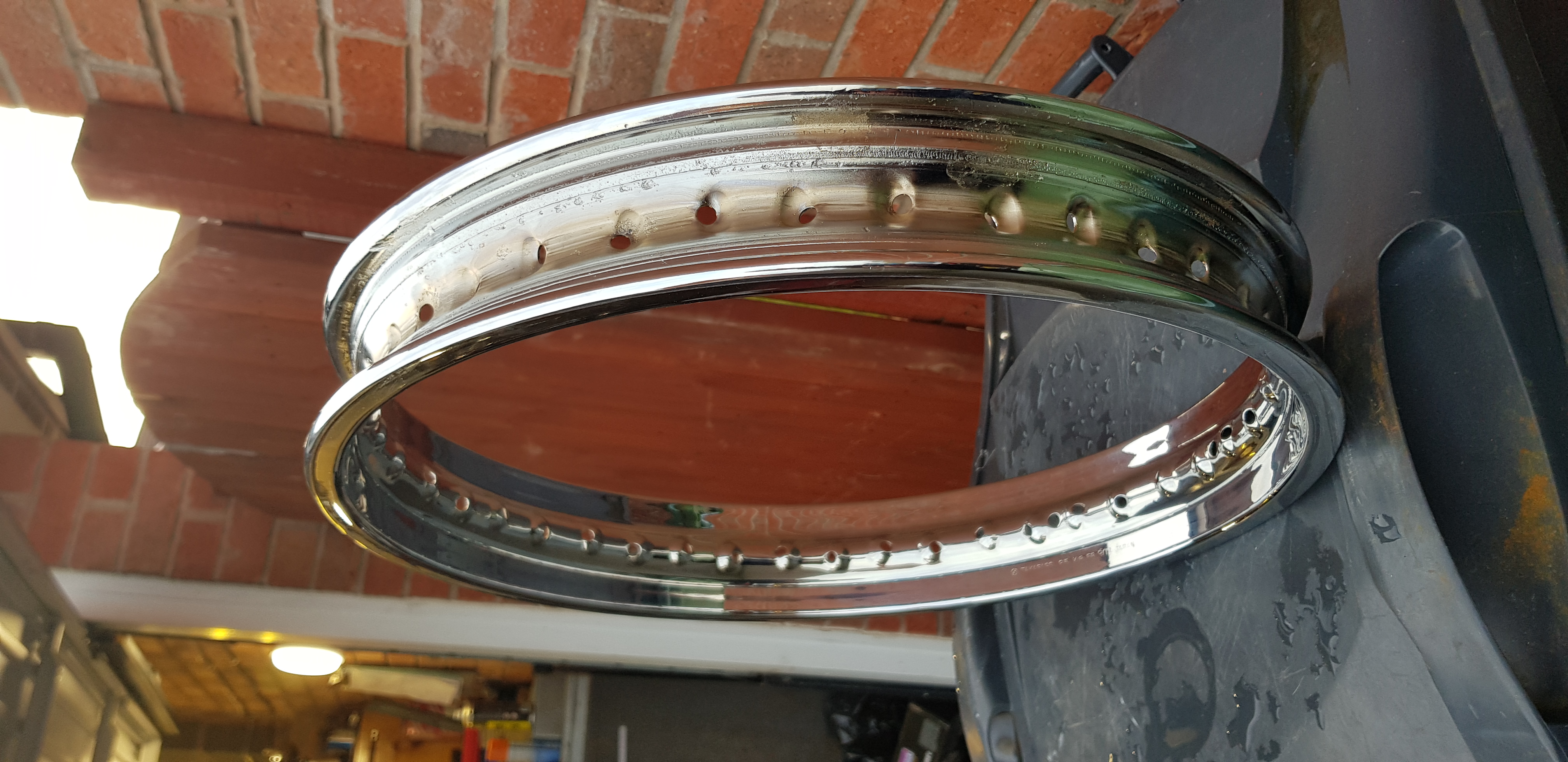 My newly chromed rear rim...beautiful job retaining the date and a new looking rim.