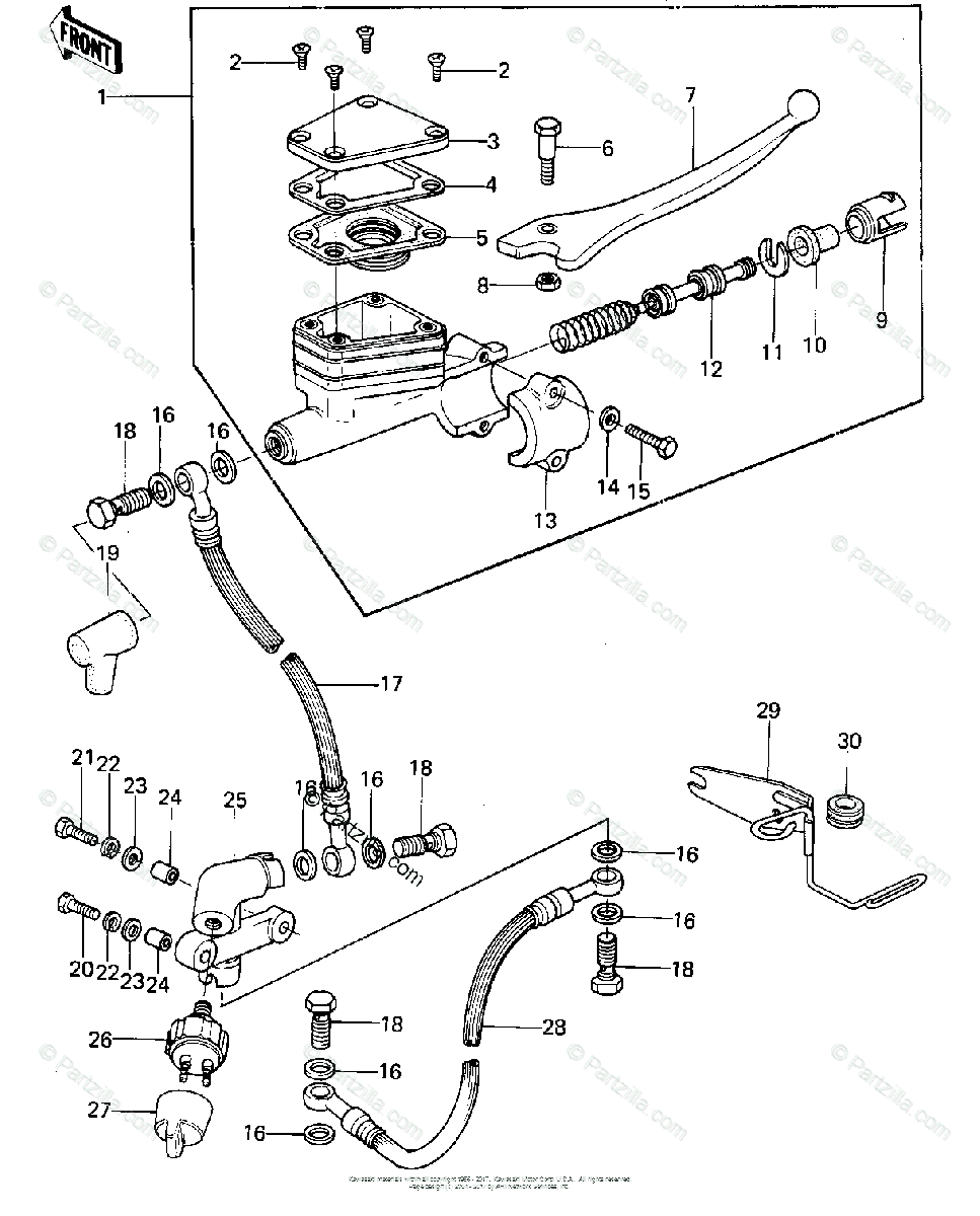 Thats where the banjo bolt on the brake line fites, never seen a cap like that before, (your bottom picture). Set up is the same as exploded diagrams below - Z900 - Z1000 A1, A2, A3, 1976 - 1980